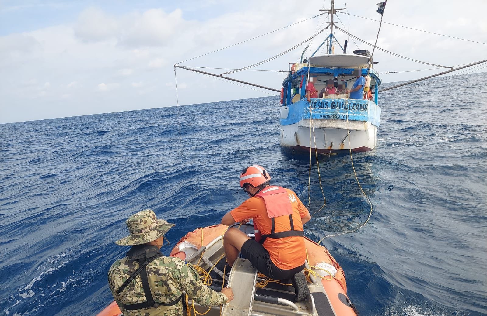 Frontera, Tabasco, 26 de diciembre. – La Secretaría de Marina a través de la Armada de México en funciones de Guardia Costera, por medio de la Quinta Zona Naval, informa que hoy personal naval proporcionó apoyo a cinco pescadores, quienes se encontraban a la deriva por falla en los motores de su embarcación, a aproximadamente 42 millas náuticas (77.7 kilómetros) de la costa de Tabasco.