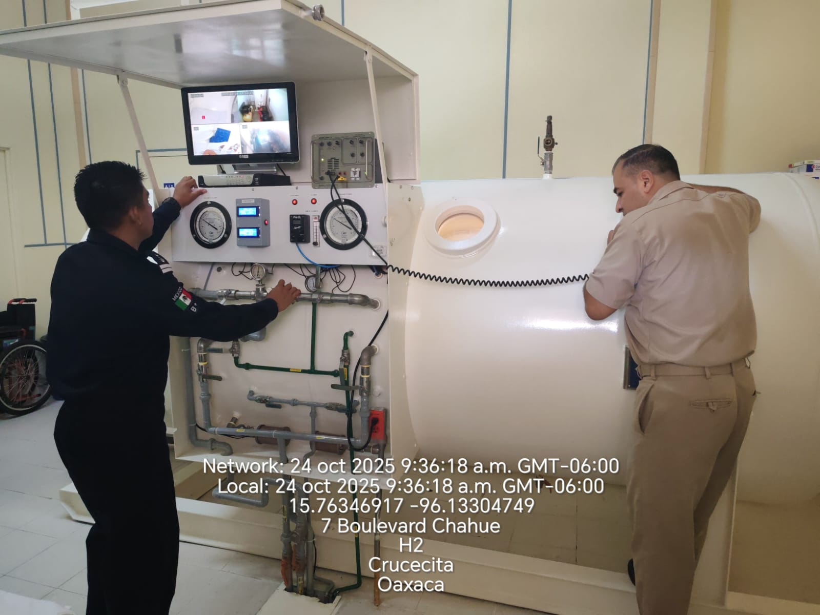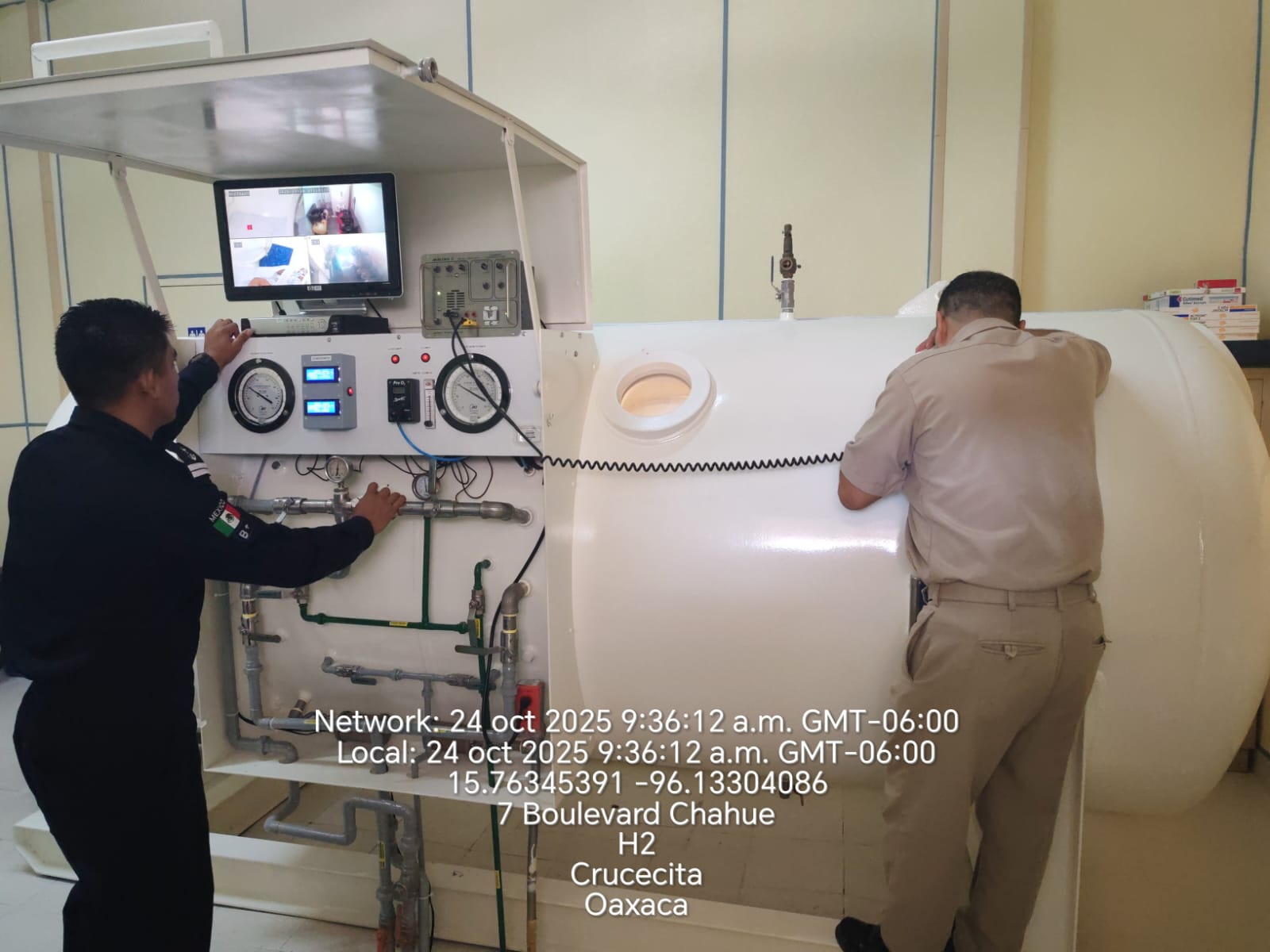 La cámara hiperbárica con la que cuenta citado nosocomio, fue utilizada como parte integral de este proceso terapéutico, garantizando una atención completa y efectiva, al encargarse del proceso de liberación de nitrógeno en el cuerpo, que no se completa en un ascenso rápido, eliminando los síntomas de la descompresión.