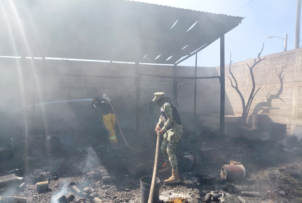 Una primera acción se llevó a cabo tras recibir una solicitud de apoyo de la Dirección de Protección Civil, por lo que elementos navales se desplazaron con una pipa de agua para extinguir el incendio ocurrido cerca de una bodega de fertilizantes.