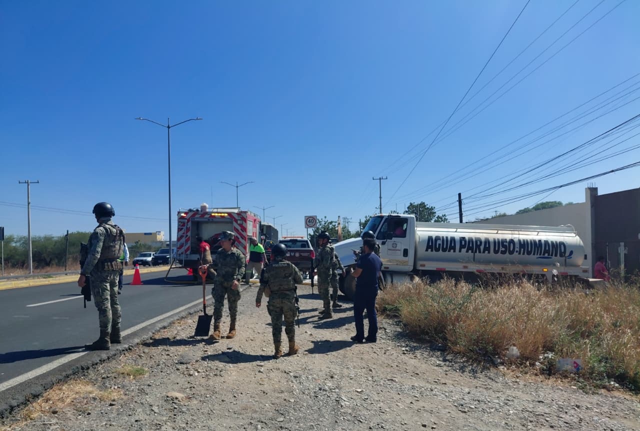 Una primera acción se llevó a cabo tras recibir una solicitud de apoyo de la Dirección de Protección Civil, por lo que elementos navales se desplazaron con una pipa de agua para extinguir el incendio ocurrido cerca de una bodega de fertilizantes.