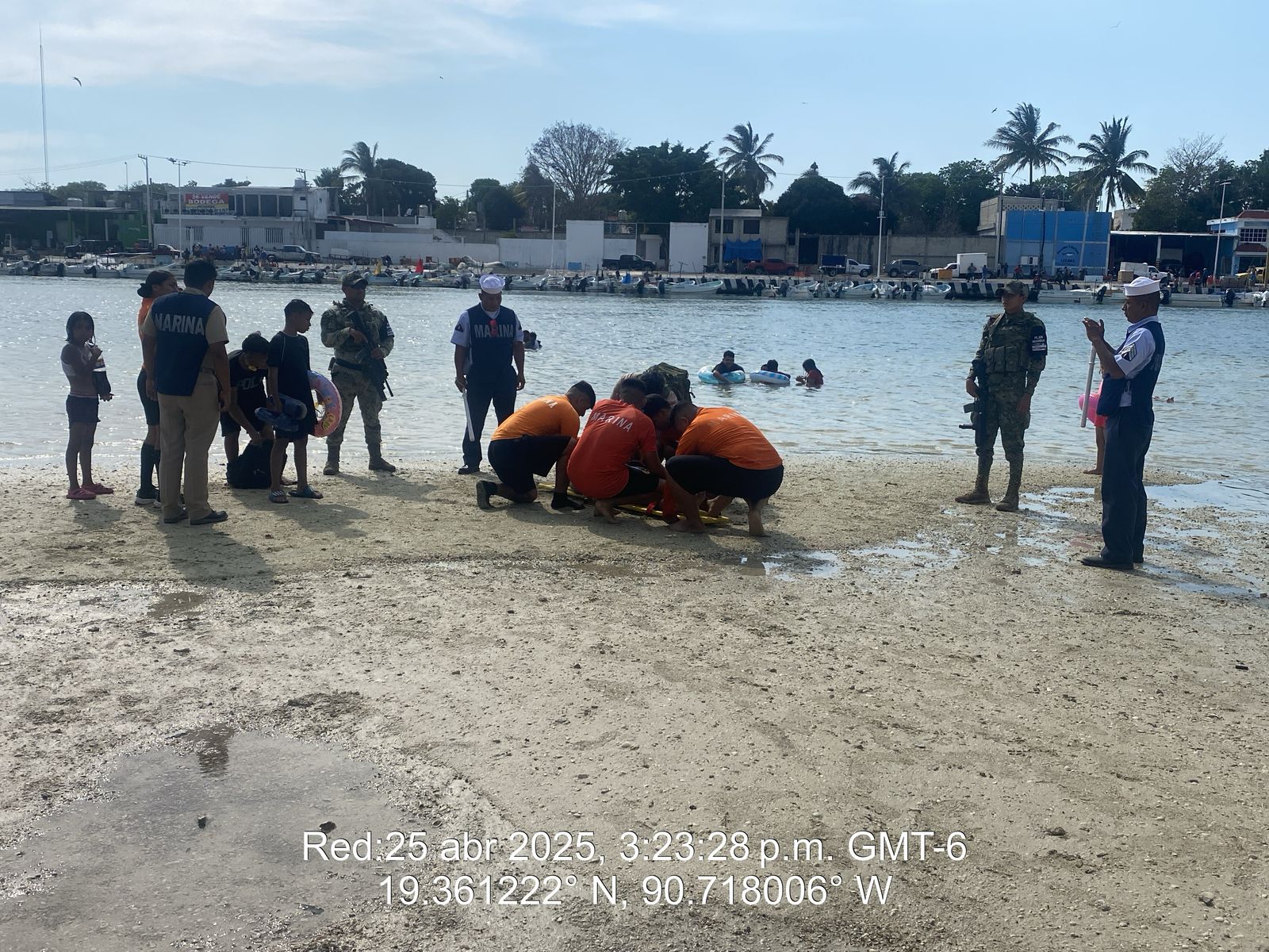 Champotón, Camp. – La Secretaría de Marina a través de la Armada de México, en funciones de Guardia Costera y dentro del marco de la implementación del Plan Marina “Operación Salvavidas Semana Santa 2025”, informa que ayer, personal naval brindó apoyo médico a una persona en la playa Boca del Río, en inmediaciones de Champotón, Campeche.