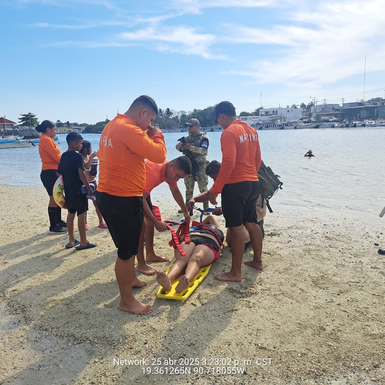 Esta acción se llevó a cabo, gracias a la implementación del puesto de socorro de la playa en mención, en donde personal de Sanidad Naval de esta Institución, realizó el rescate de una mujer que presentaba problemas para salir del mar, brindando los primeros auxilios, reportándola como estable, para posteriormente ser trasladada al Hospital General de la localidad, para una mayor atención médica.