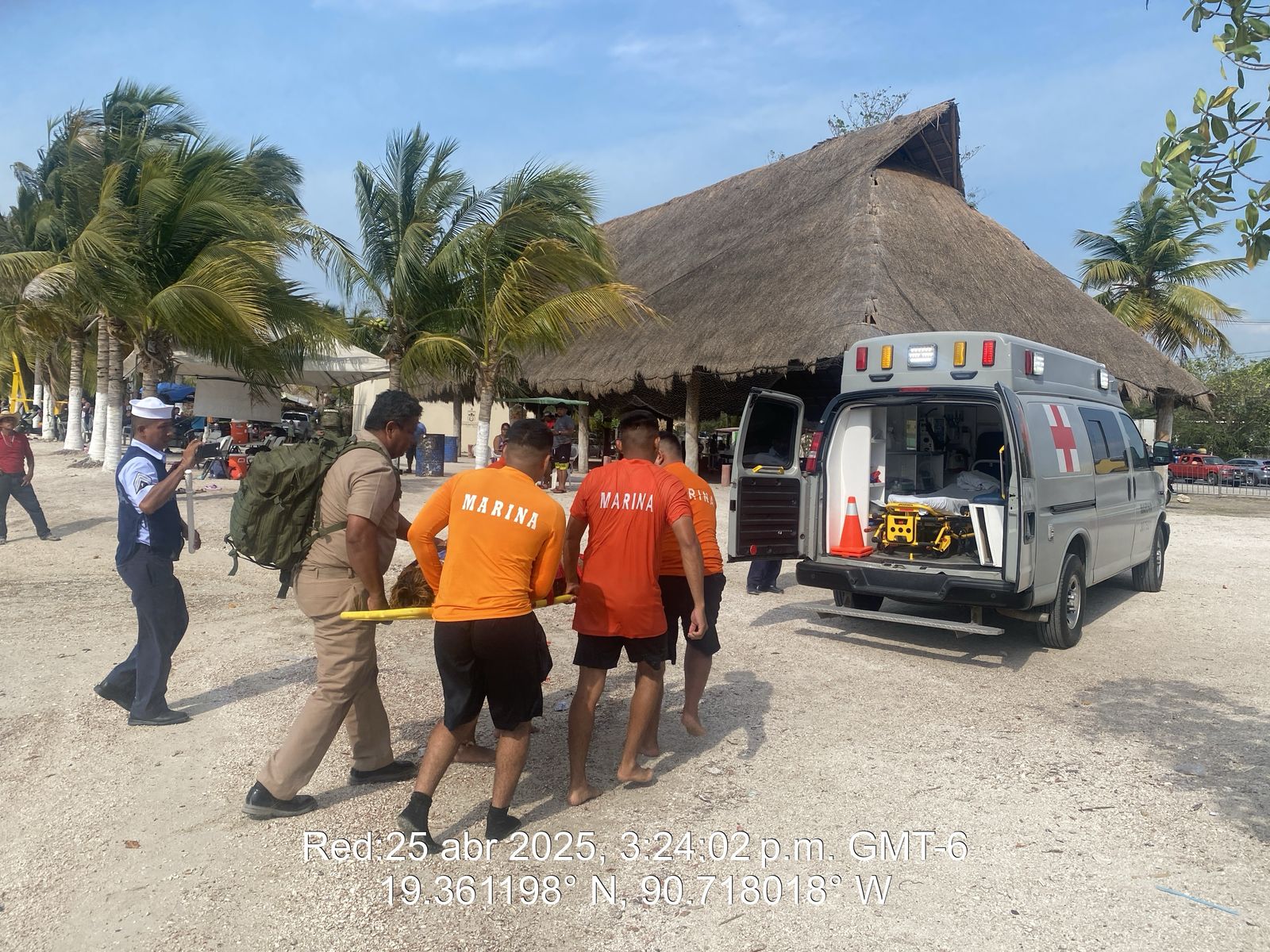 Champotón, Camp. – La Secretaría de Marina a través de la Armada de México, en funciones de Guardia Costera y dentro del marco de la implementación del Plan Marina “Operación Salvavidas Semana Santa 2025”, informa que ayer, personal naval brindó apoyo médico a una persona en la playa Boca del Río, en inmediaciones de Champotón, Campeche.