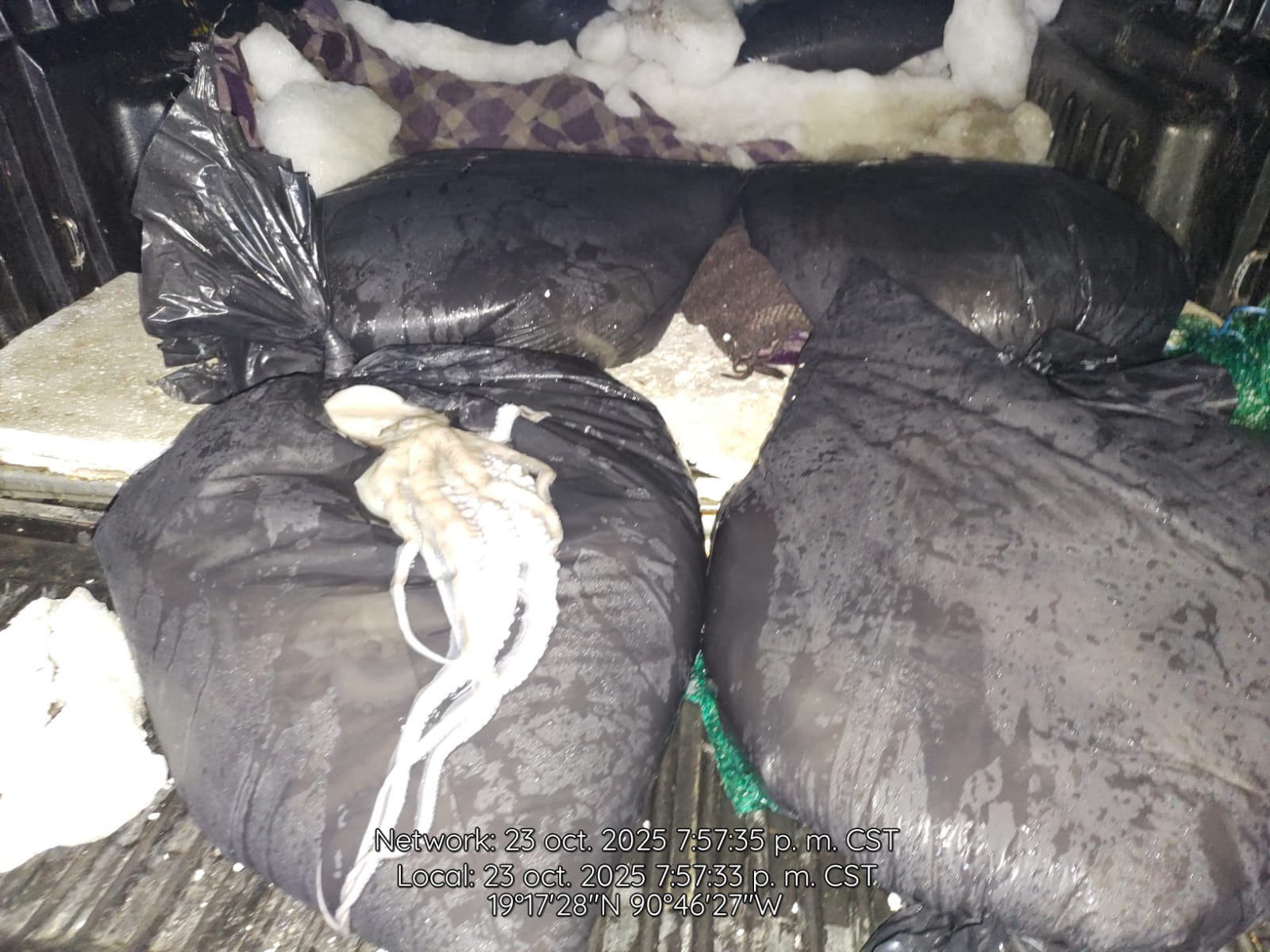 Personal Naval en Coordinación con Conapesca Efectúa Retención Precautoria de Aproximadamente 140 Kilogramos de Pulpo Maya en Champotón, Campeche