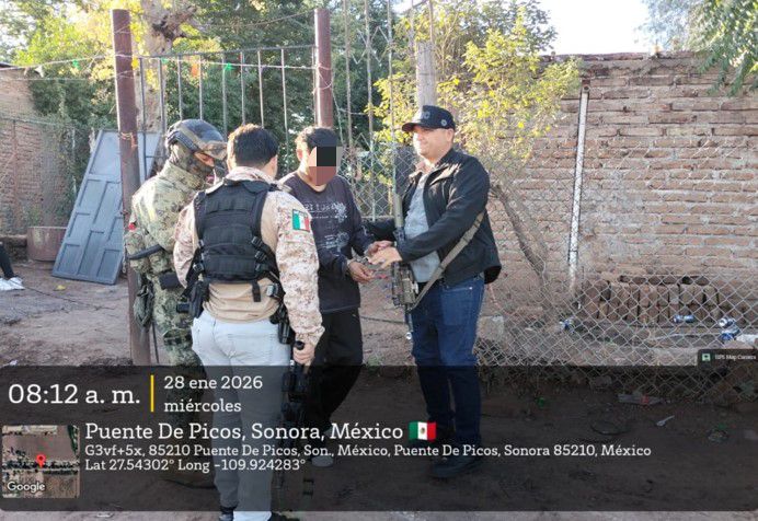 Guaymas, Son. – La Secretaría de Marina a través de la Armada de México, por conducto de la Segunda Región Naval informa que ayer, en el marco de las acciones para mantener la paz en el estado de Sonora, personal naval en coordinación con la Agencia Ministerial de Investigación Criminal, derivado de trabajos de inteligencia, lograron la detención de un presunto transgresor de la ley en el municipio de Cajeme, Sonora.