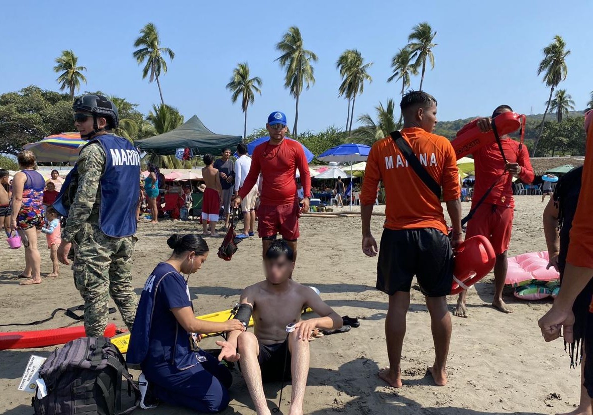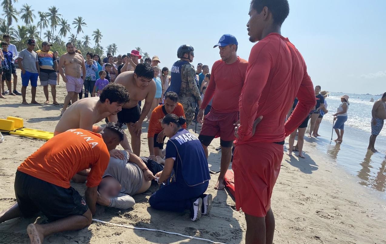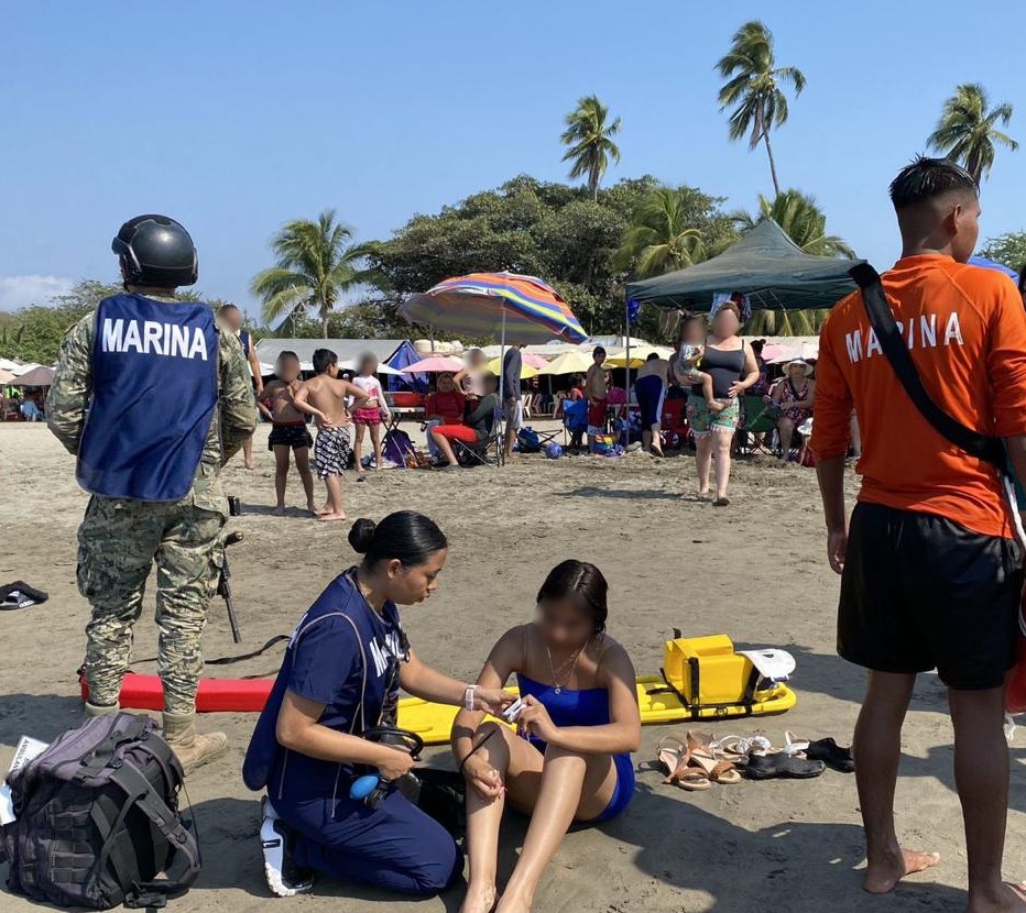 En un segundo evento, en la misma Playa a una distancia aproximada de 30 metros mar adentro, se observaron tres jóvenes que se encontraban en riesgo de ahogamiento; por lo que, fueron rescatados y llevados a la orilla, brindándoles de igual forma atención médica, descartando cualquier peligro.