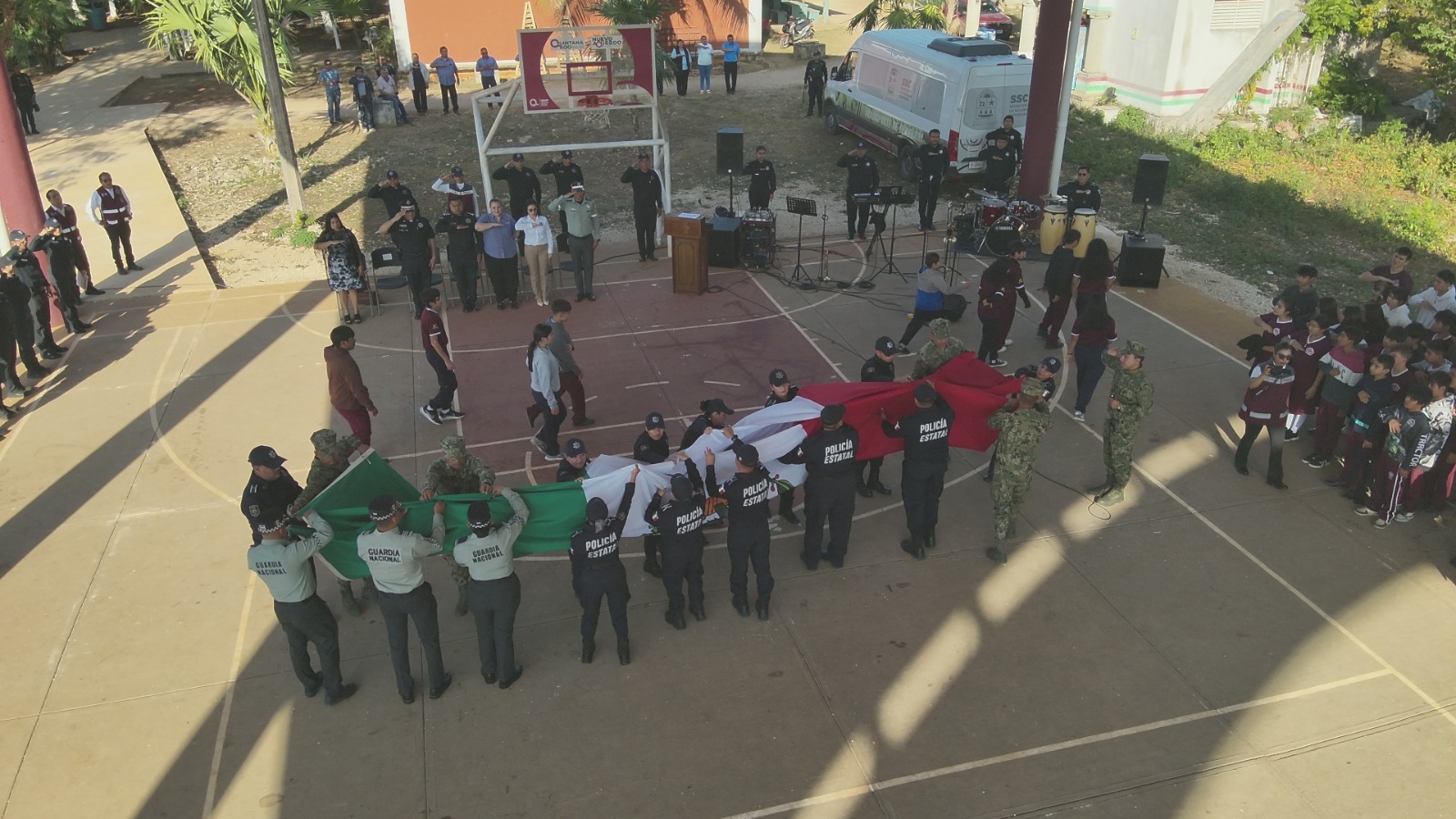 Lo anterior, se llevó a cabo como parte de los esfuerzos para reducir la violencia en Quintana Roo, donde personal naval participó, en planteles educativos de los municipios de Puerto Morelos y Benito Juárez, con dinámicas relativas a la historia de la bandera nacional, haciendo consciencia de su importancia como símbolo patrio y como identidad nacional, fortaleciendo el patriotismo y la unión del pueblo mexicano.
