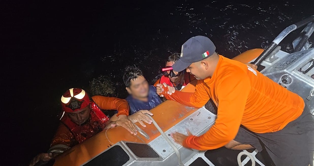 Derivado de la llamada de auxilio recibida, se ordenó el despliegue inmediato de un helicóptero y dos embarcaciones de la Estación Naval de Búsqueda, Rescate y Vigilancia Marítima (ENSAR) La Paz, cuyos elementos localizaron a los tripulantes, efectuando su rescate de manera oportuna. Posteriormente, fueron trasladados al muelle de la ENSAR La Paz, encontrándose estables y sin lesiones reportadas.