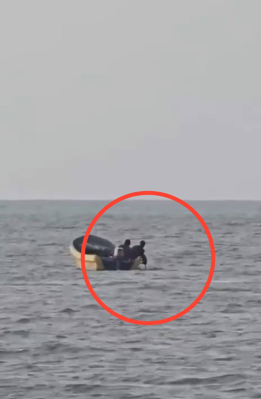 Atendiendo al llamado, pescadores que navegaban por la zona se acercaron al punto donde se encontraba el perro, el cual, visiblemente agotado, apenas lograba mantenerse sobre la superficie. Con ayuda de una red y maniobras cuidadosas, lograron subirlo a bordo de la embarcación.