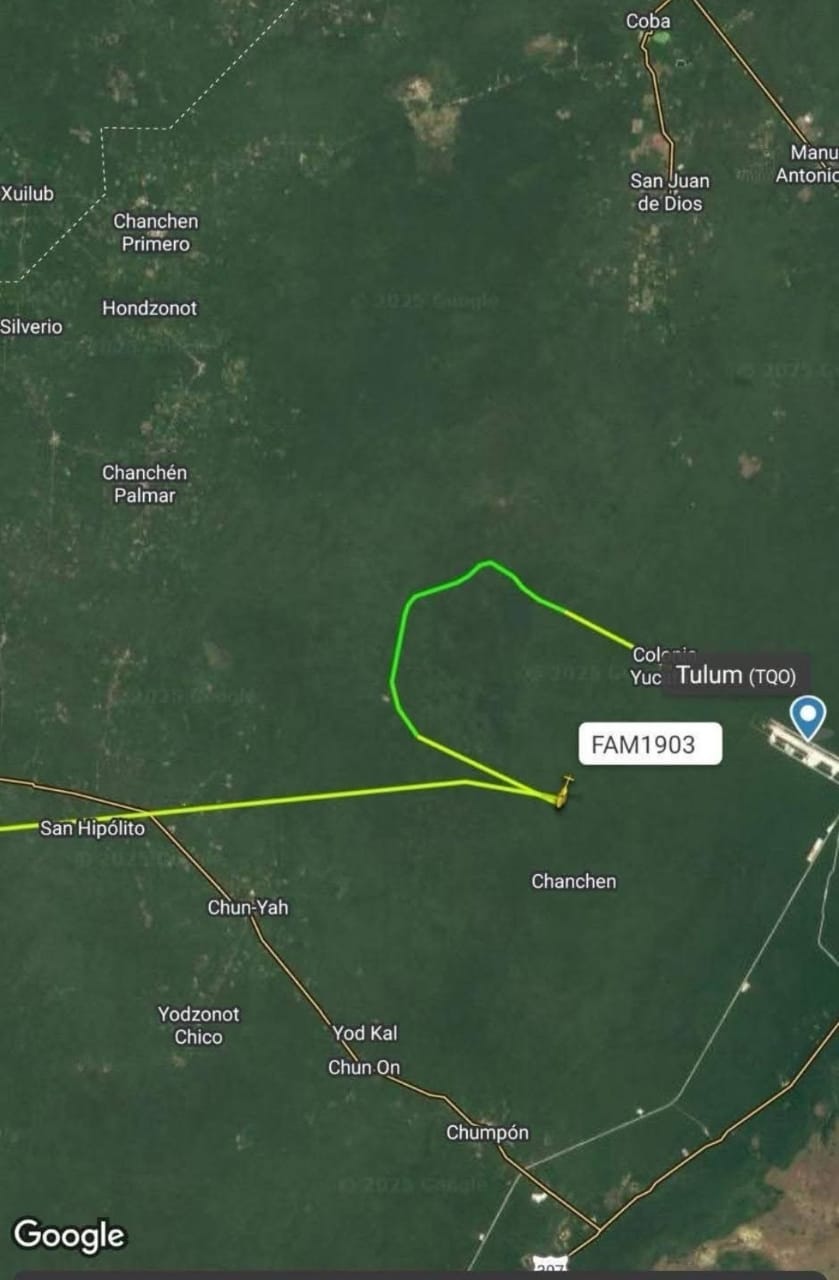 En junio 26, del 2025, el helicóptero de la Coordinación General de Transportes Aéreos Presidenciales (CGTAP) realizó otro viaje a la población de Chanchem, municipio de Tulum Quintana Roo, a las 17:23 horas.