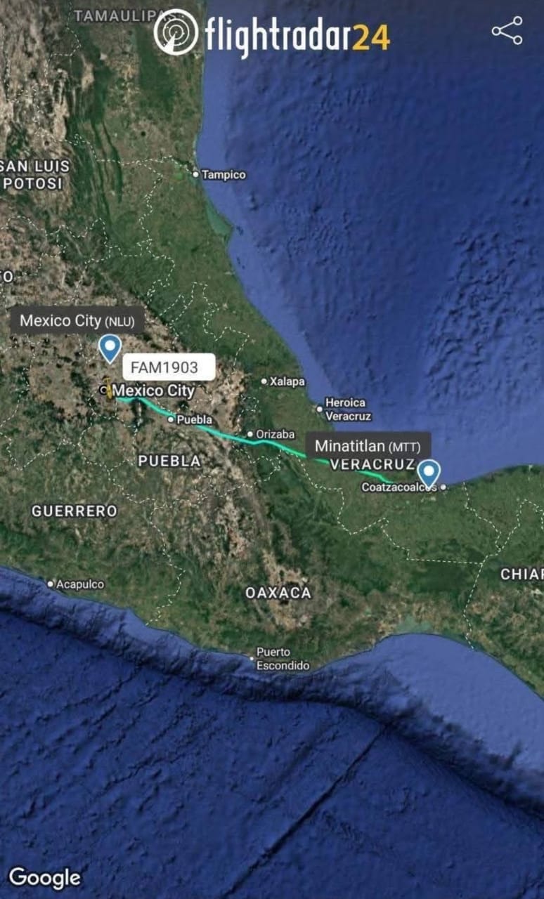 De acuerdo a la plataforma, el primer viaje que realizó esta aeronave con los familiares de López Obrador fue en junio 25 del 2025 a las 16:46 horas; del Aeropuerto de Minatitlán hacia la Ciudad de México.
