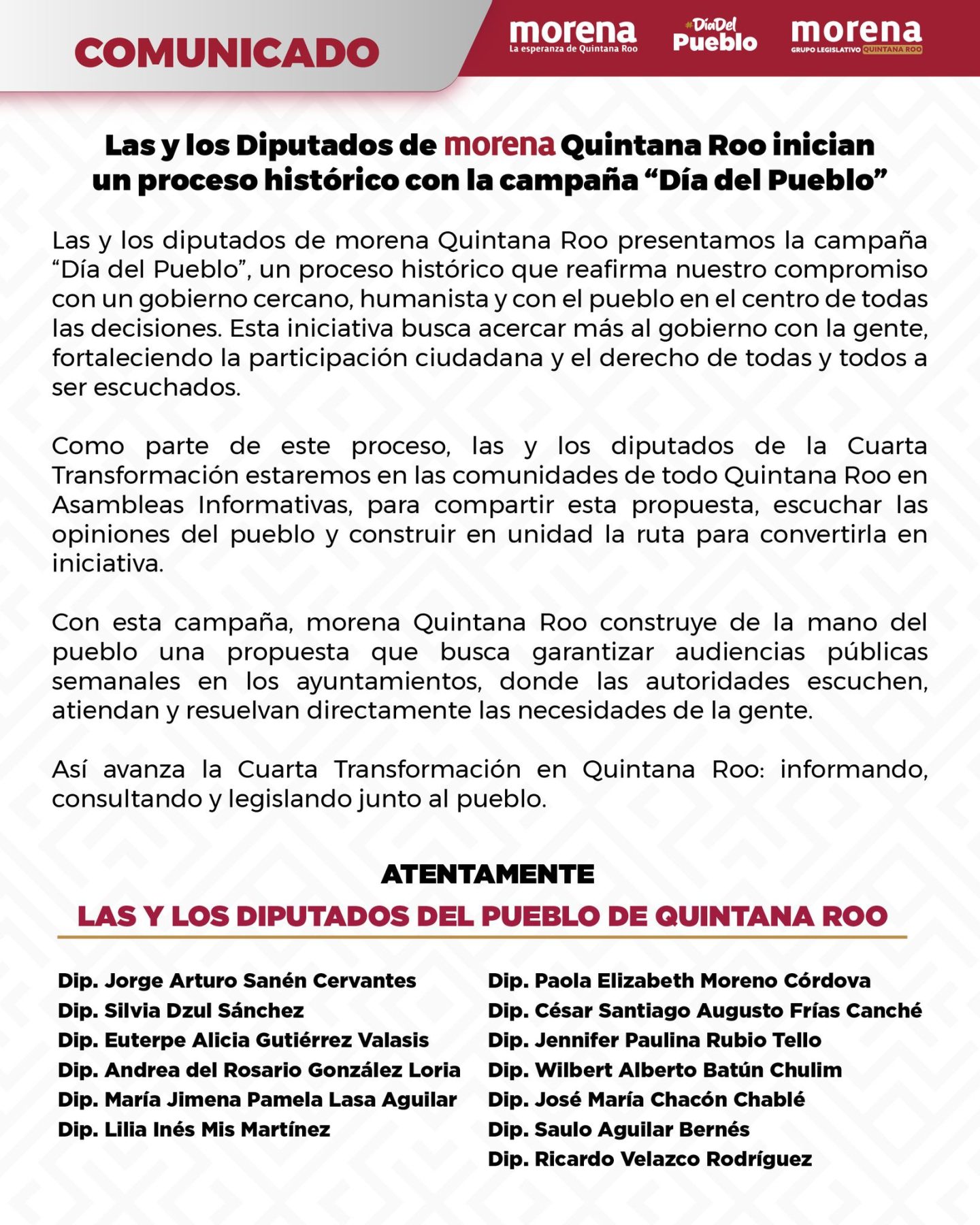 CANCÚN, 17 de noviembre.- El diputado Hugo Alday Nieto, integrante de la banca del Partido del Trabajo (PT) en la XVIII Legislatura de Quintana Roo, consideró que la propuesta de sus pares de Morena para establecer de manera obligatoria el llamado “Día del Pueblo” a los 11 ayuntamientos podría vulnerar la capacidad presupuestal de la mayoría de ellos y hasta la autonomía municipal prevista en el artículo 115 constitucional, por lo que se debe discutir a fondo.