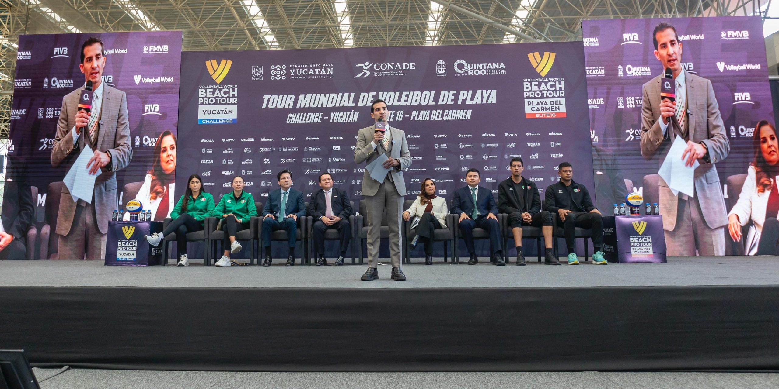 El director de Conade, Rommel Pacheco Marrufo, informó ante los medios que los estados de Yucatán y Quintana Roo, serán sedes del Tour Mundial de Voleibol de Playa México 2025, que se llevará a cabo el próximo mes de marzo en nuestro país