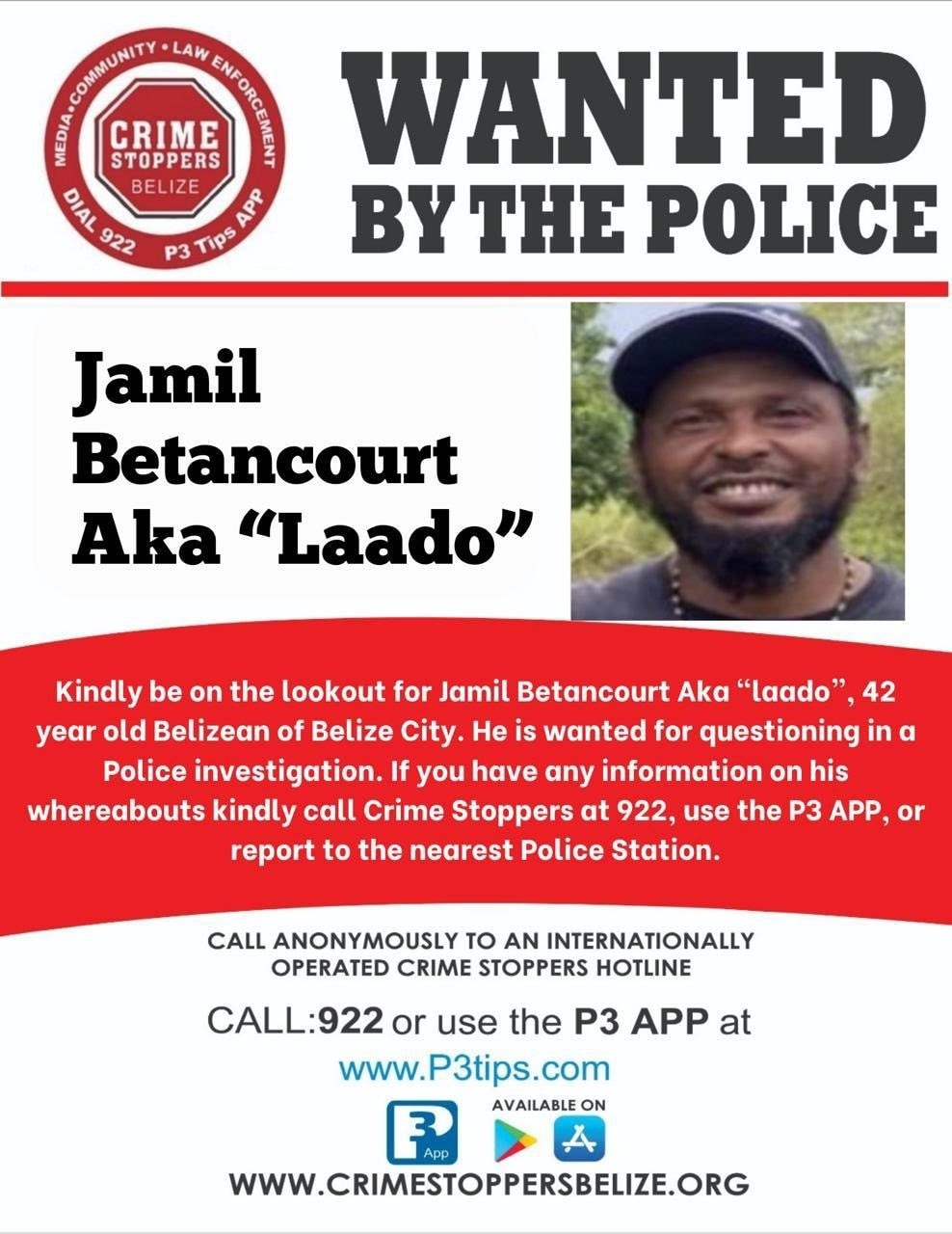 En un segundo caso, la Policía también busca a Jamil Betancourt, alias “Laado”, de 42 años de edad, igualmente originario de la Ciudad de Belice. De acuerdo con los informes oficiales, Betancourt debe presentarse ante las autoridades para ser interrogado como parte de una investigación en curso. Al igual que en el caso anterior, las autoridades reiteraron que toda información aportada por la ciudadanía será tratada con estricta reserva y puede ser determinante para el avance de las indagatorias.