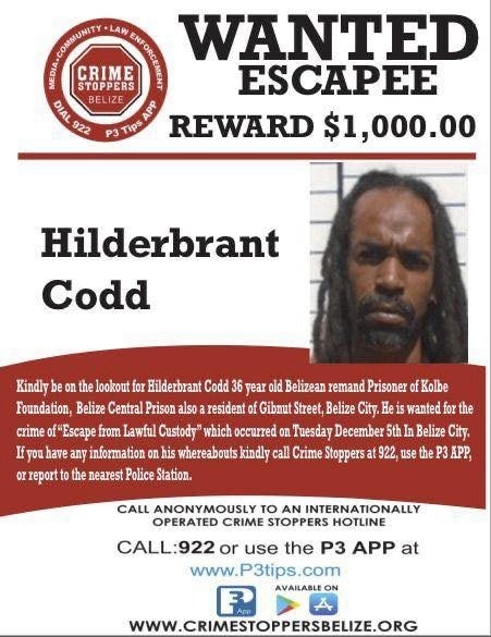 El tercer caso reviste mayor gravedad debido a que involucra a un reo fugado. Se trata de Hilderbrant Codd, de 36 años, quien escapó de la Prisión Central de Belice, Kolbe Foundation, el pasado 5 de diciembre de 2024. Codd se encontraba en prisión preventiva y ahora enfrenta cargos adicionales por el delito de Fuga de Custodia Legal. Es residente de Gibnut Street, en la Ciudad de Belice, y su evasión ha derivado en un operativo especial de búsqueda, dado el riesgo que su condición representa para la seguridad pública.