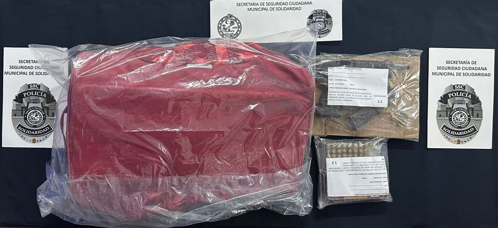 Playa del Carmen, a 02 de enero. – La Policía Turística dentro del “Operativo Delta” en coordinación con SEMAR y Unidad Canina (K 9) en las inmediaciones del muelle fiscal realizando inspecciones aleatorias de entrada y salida, esto con la finalidad de mantener la paz y la convivencia social en el perímetro municipal evitando la comisión de delitos y faltas administrativas, detuvo a una persona de sexo masculino luego de que intentó pasar por el arco lector del muelle fiscal un arma de fuego, un cargador y 44 cartuchos.