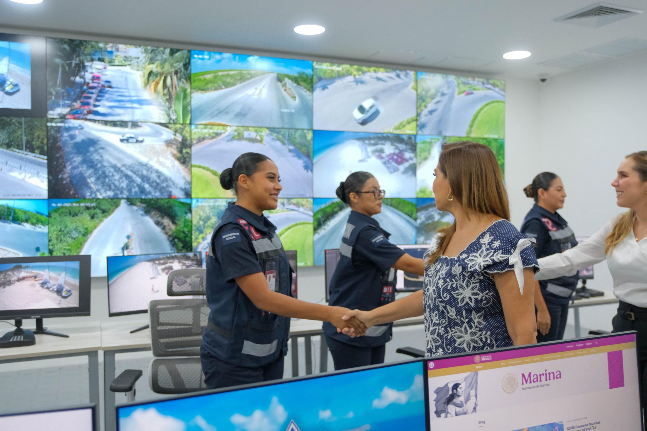 Acompañada de la presidenta municipal de Atenea Gómez Ricalde, y del secretario de Seguridad Ciudadana, Julio César Gómez Torres, la gobernadora de Quintana Roo afirmó que esta Red permite actuar de inmediato, pero también prevenir y anticiparse.