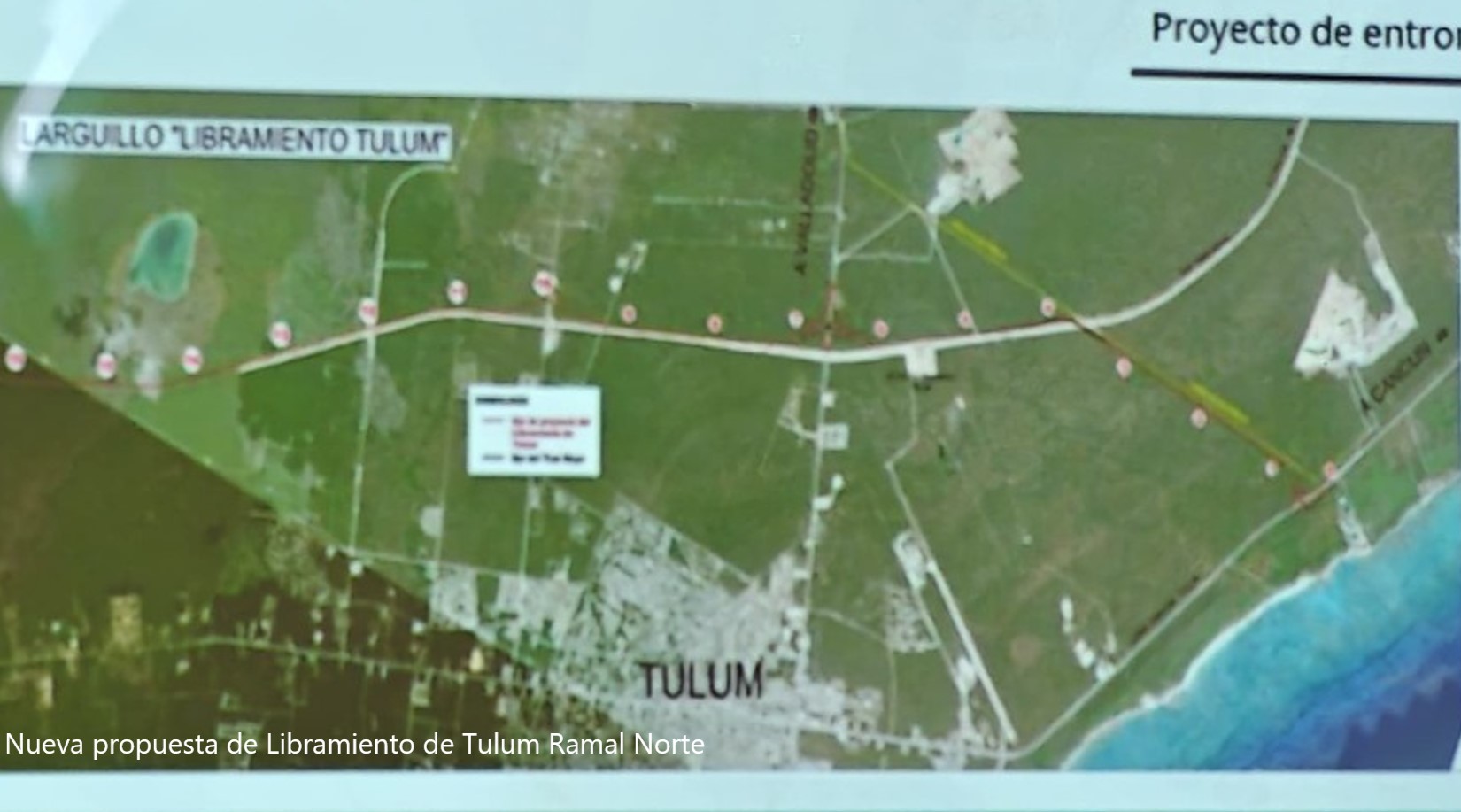 El camino clausurado en medio de la selva y sobre cavernas y ríos subterráneos del sistema Sac Actún era el ramal norte del libramiento, que partía desde el tramo carretero Tulum-Playa, a la altura de la localidad Jacinto Pat, y se dirigía a la altura del Rancho Viejo, en la carretera Tulum-Cobá.