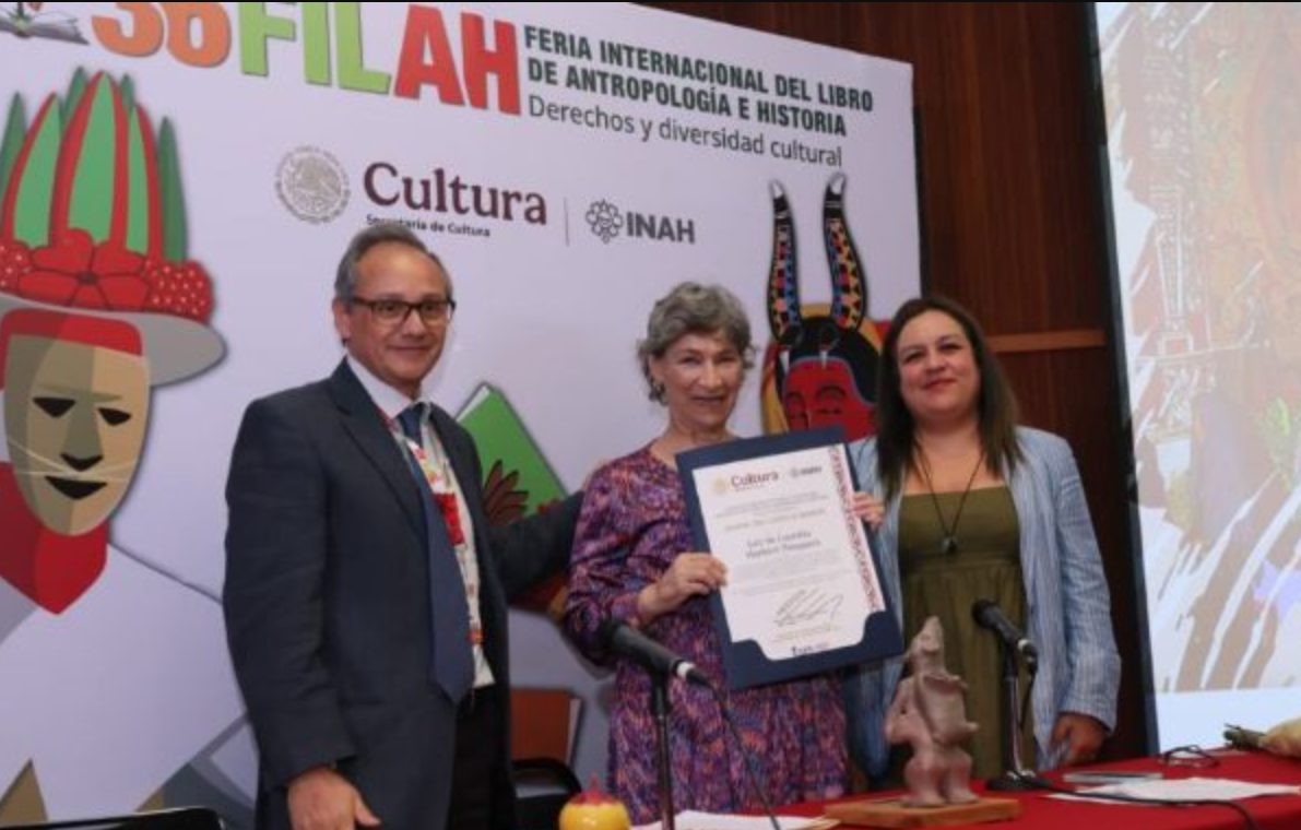 En el Auditorio Fray Bernardino de Sahagún del Museo Nacional de Antropología, con sonoros aplausos de fondo, la especialista recibió la distinción con su característica humildad, al cierre del VIII Coloquio de Conservadores del Patrimonio Cultural, efectuado el 22 de septiembre, en el marco de la 36 Feria Internacional del Libro de Antropología e Historia (FILAH).
