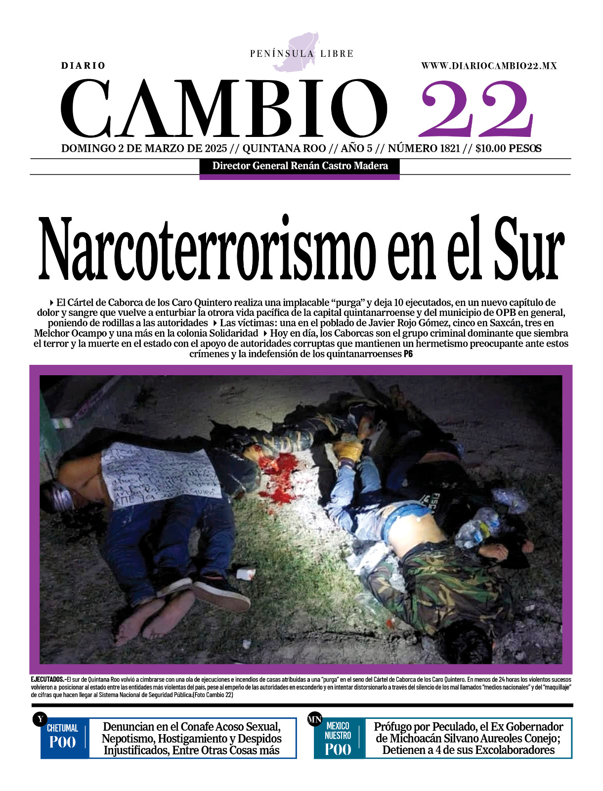 Portadas del Periódico CAMBIO 22 en su Edición Impresa del 02 de Marzo de 2025