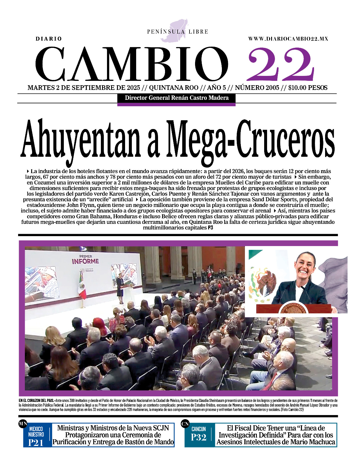 Portadas del Periódico CAMBIO 22 en su Edición Impresa del 02 de Septiembre de 2025