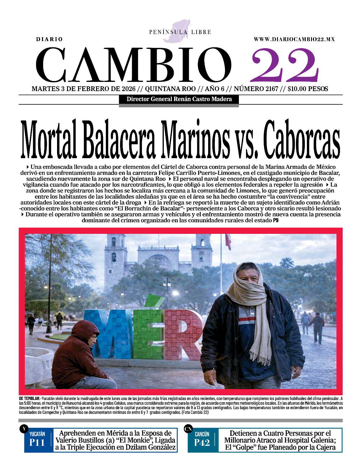 Portadas del Periódico CAMBIO 22 en su Edición Impresa del 03 de Febrero de 2026