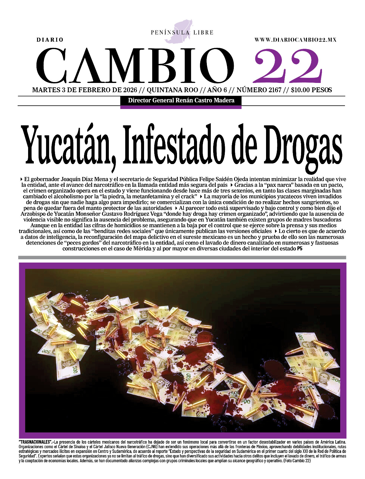 Portadas del Periódico CAMBIO 22 en su Edición Impresa del 03 de Febrero de 2026