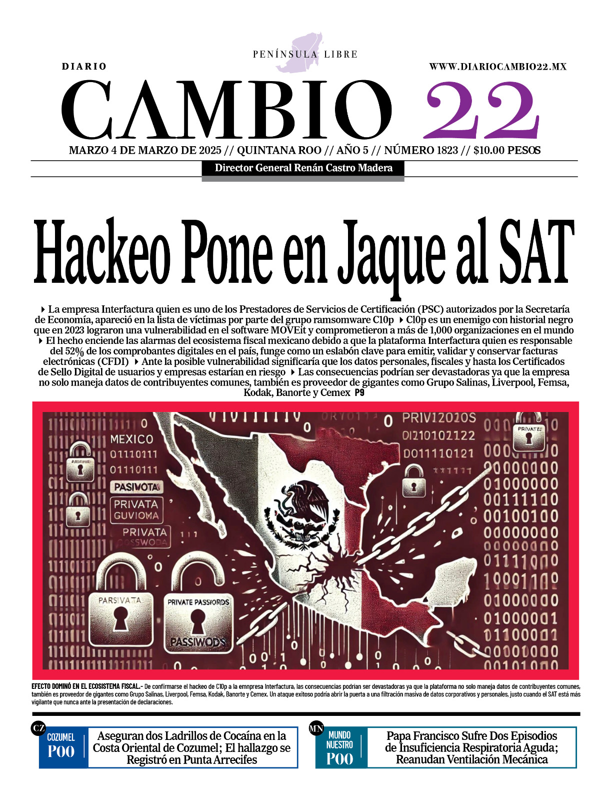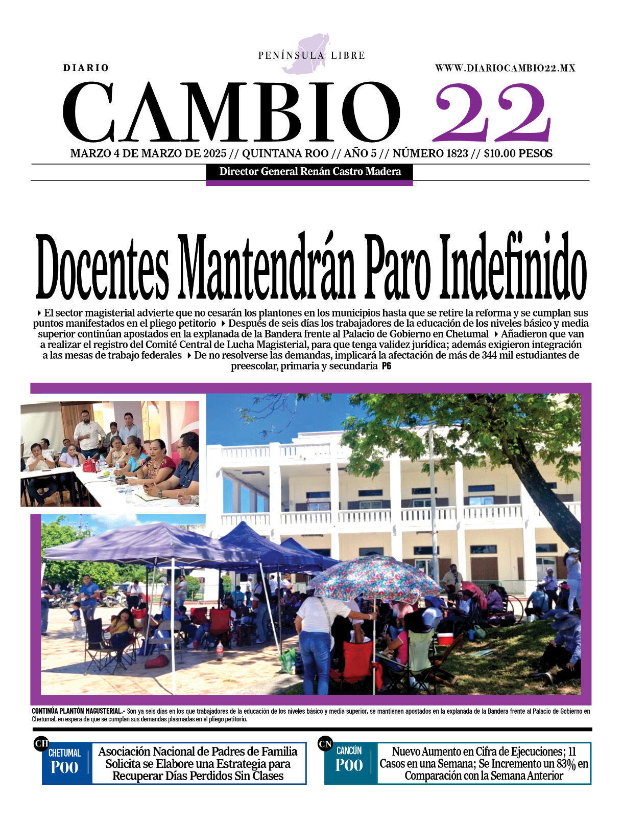 Portadas del Periódico CAMBIO 22 en su Edición Impresa del 04 de Marzo de 2025