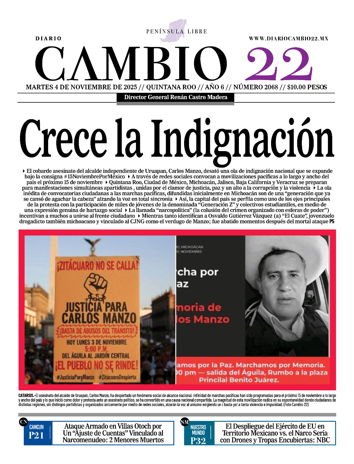 Portadas del Periódico CAMBIO 22 en su Edición Impresa del 04 de Noviembre de 2025