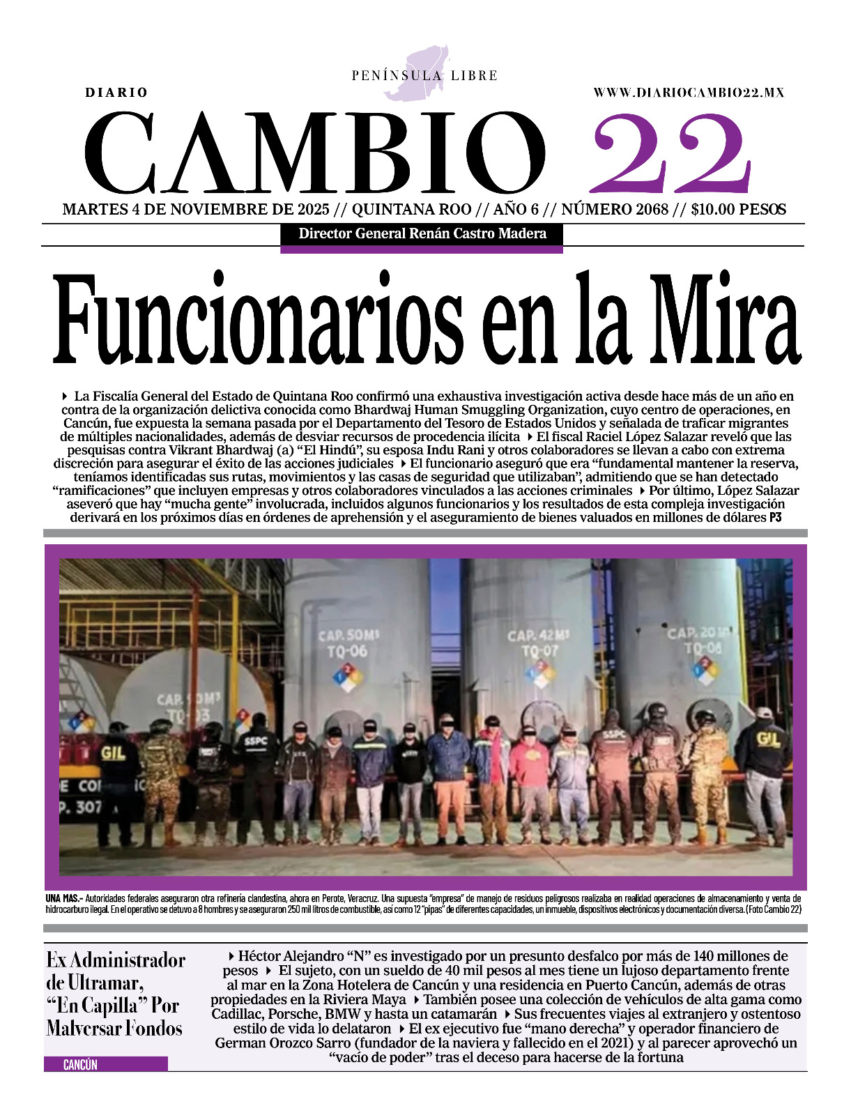 Portadas del Periódico CAMBIO 22 en su Edición Impresa del 04 de Noviembre de 2025
