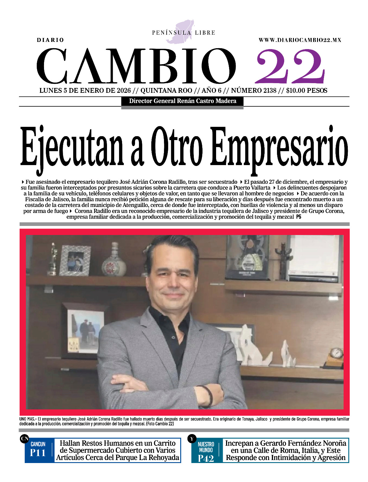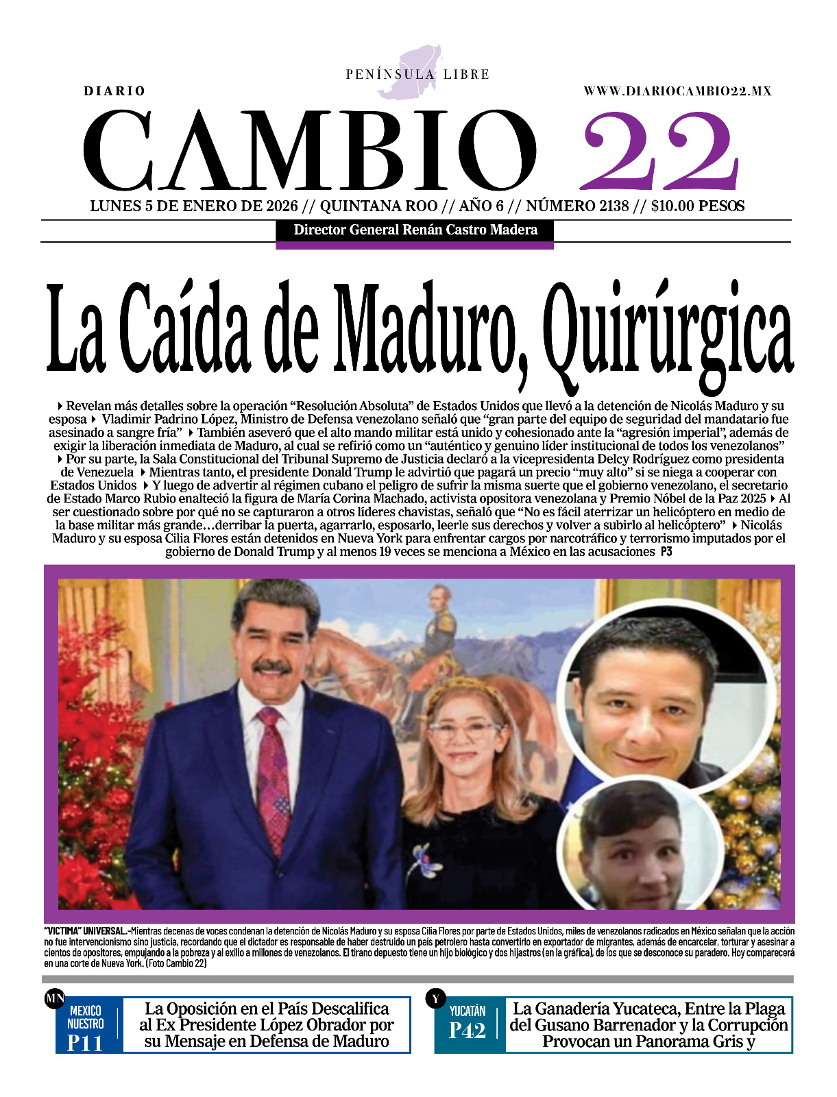 Portadas del Periódico CAMBIO 22 en su Edición Impresa del 05 de Enero de 2026