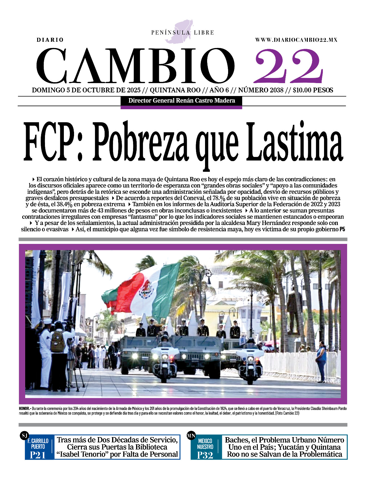 Portadas del Periódico CAMBIO 22 en su Edición Impresa del 05 de Octubre de 2025