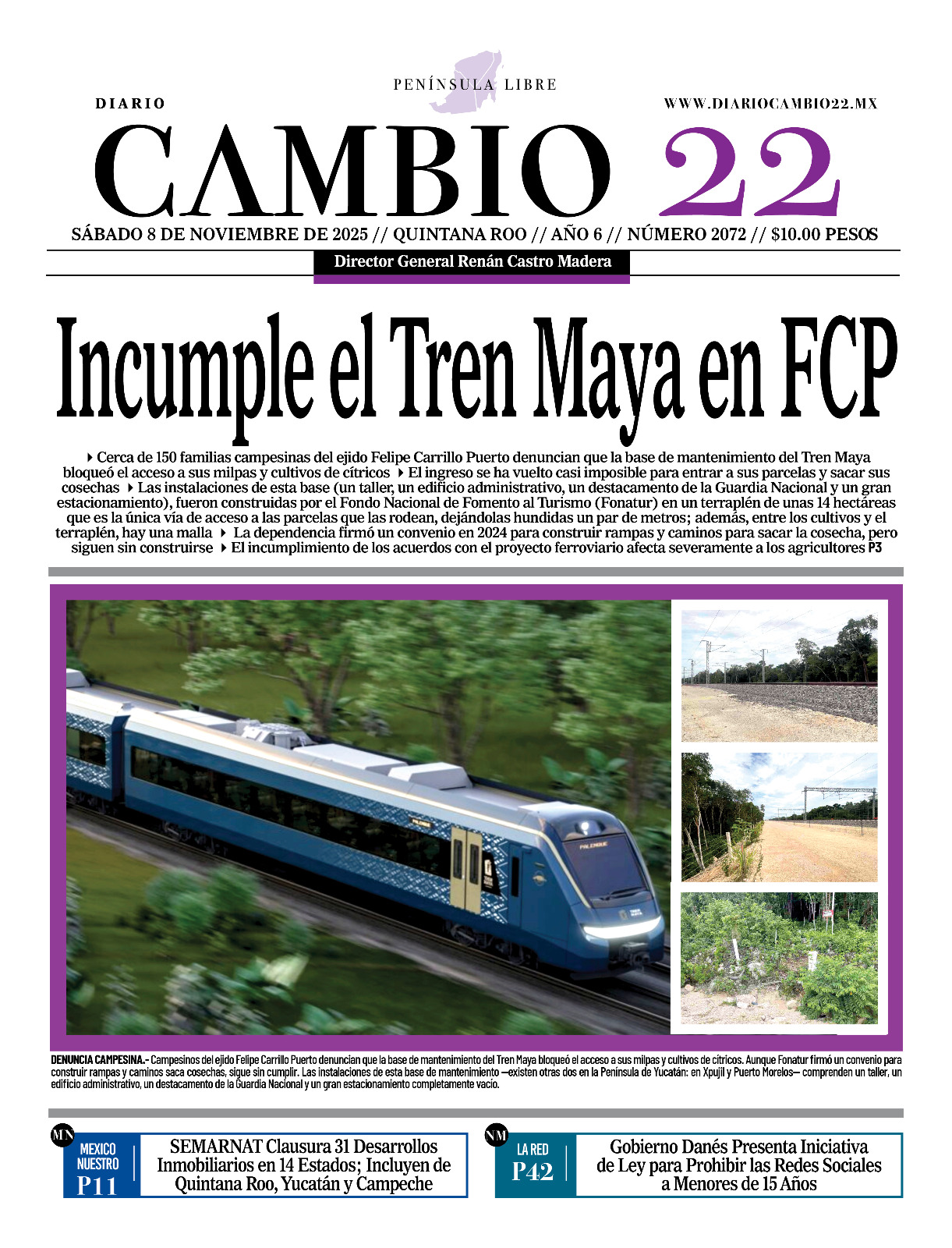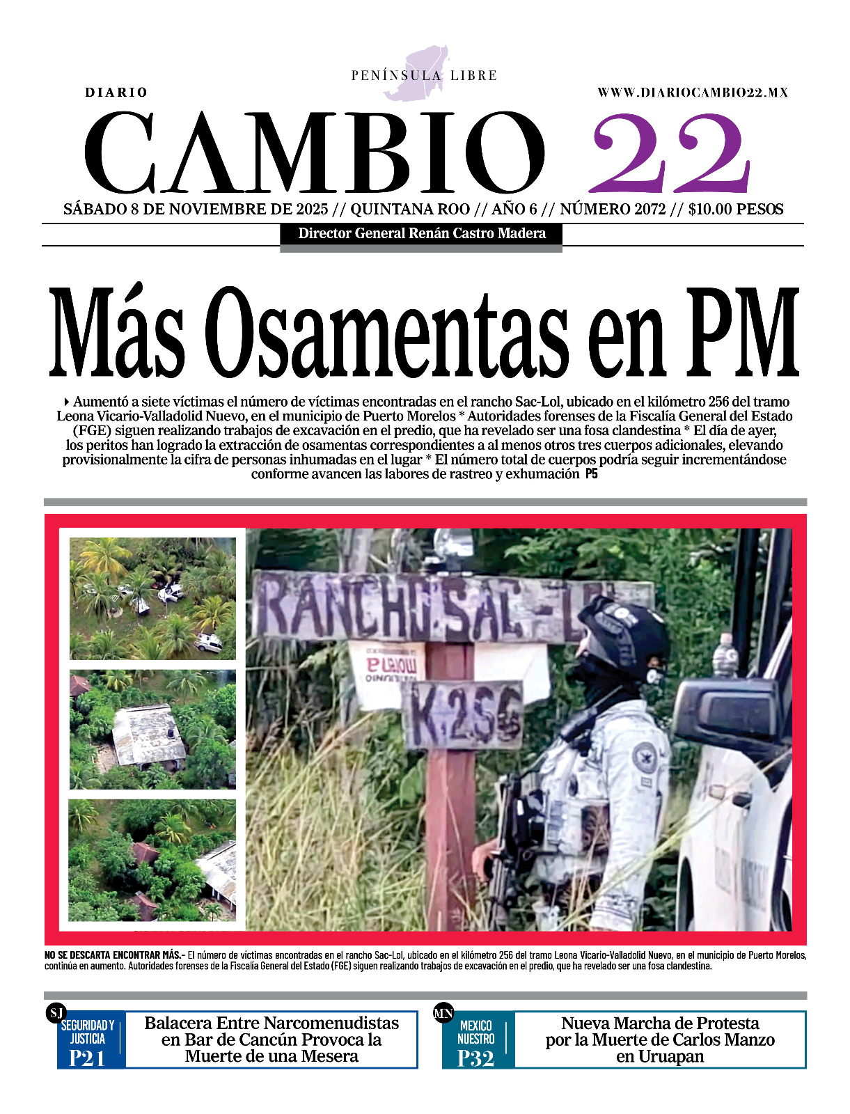 Portadas del Periódico CAMBIO 22 en su Edición Impresa del 08 de Noviembre de 2025