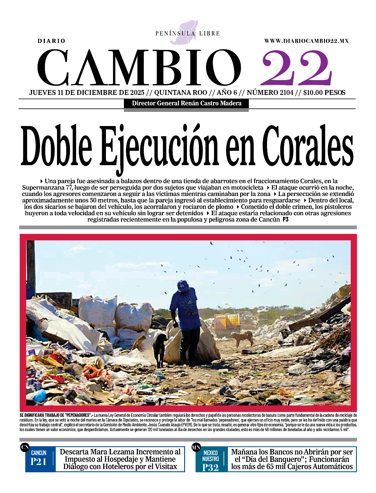 Portadas del Periódico CAMBIO 22 en su Edición Impresa del 11 de Diciembre de 2025