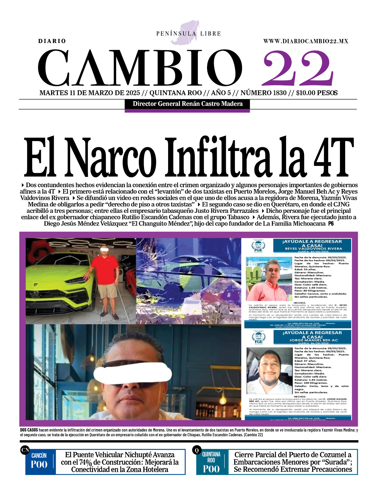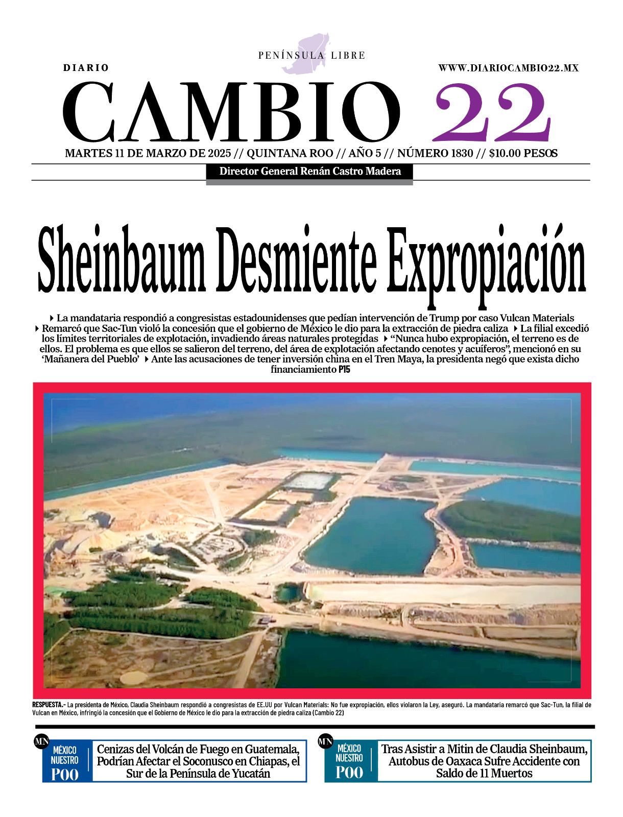 Portadas del Periódico CAMBIO 22 en su Edición Impresa del 11 de Marzo de 2025
