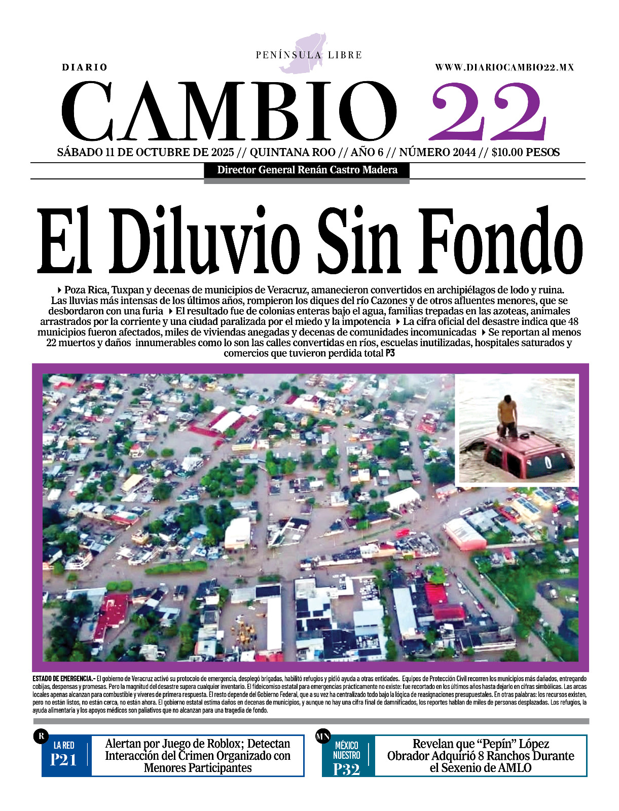 Portadas del Periódico CAMBIO 22 en su Edición Impresa del 11 de Octubre de 2025