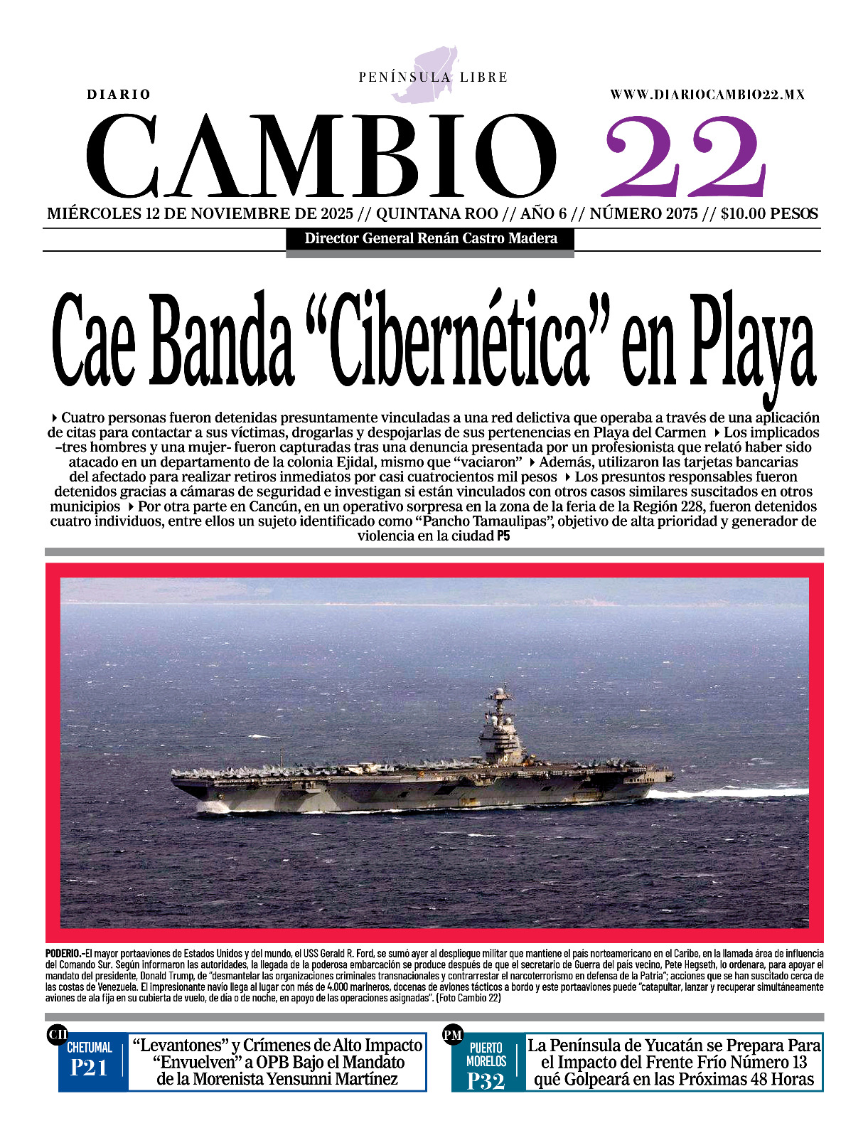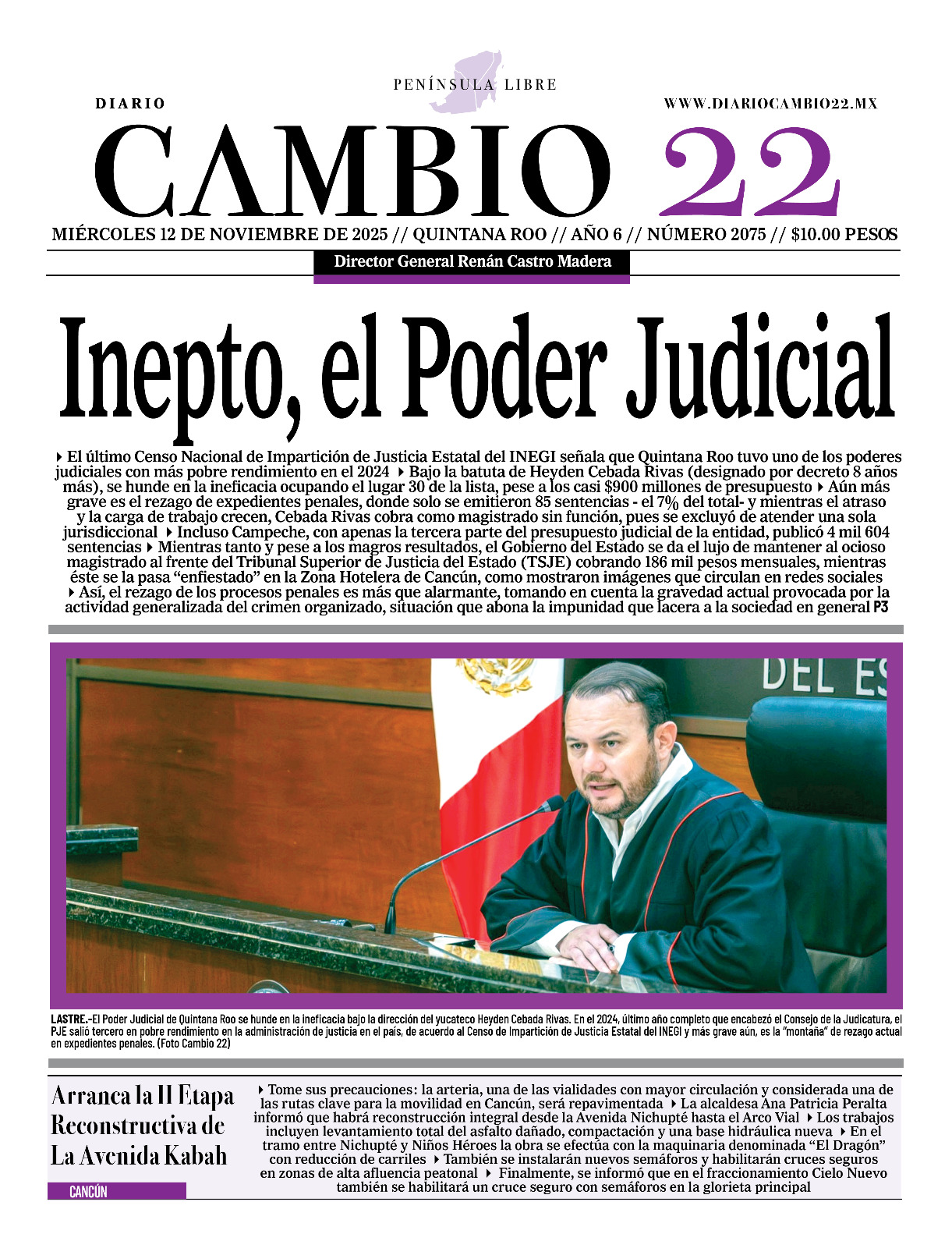 Portadas del Periódico CAMBIO 22 en su Edición Impresa del 12 de Noviembre de 2025