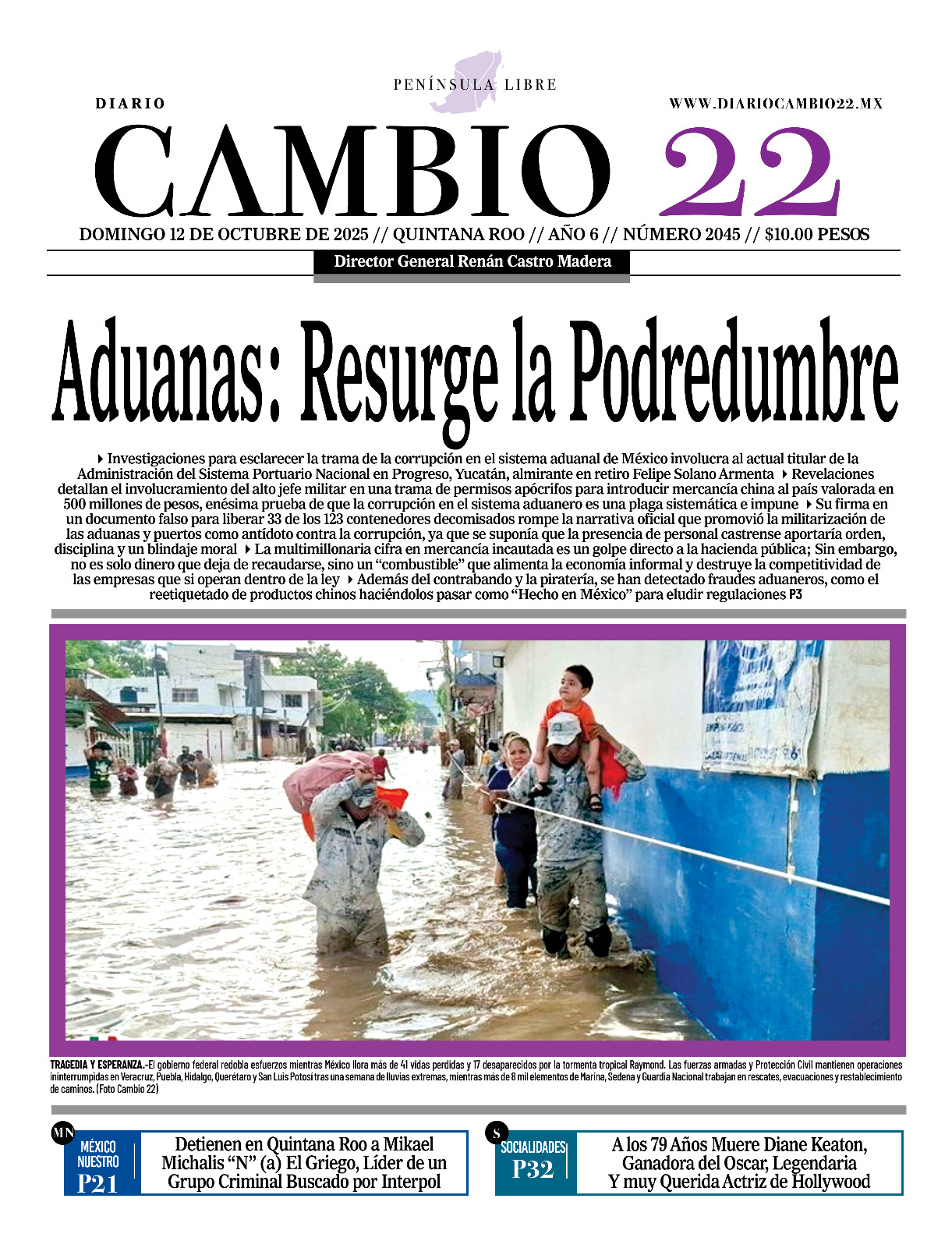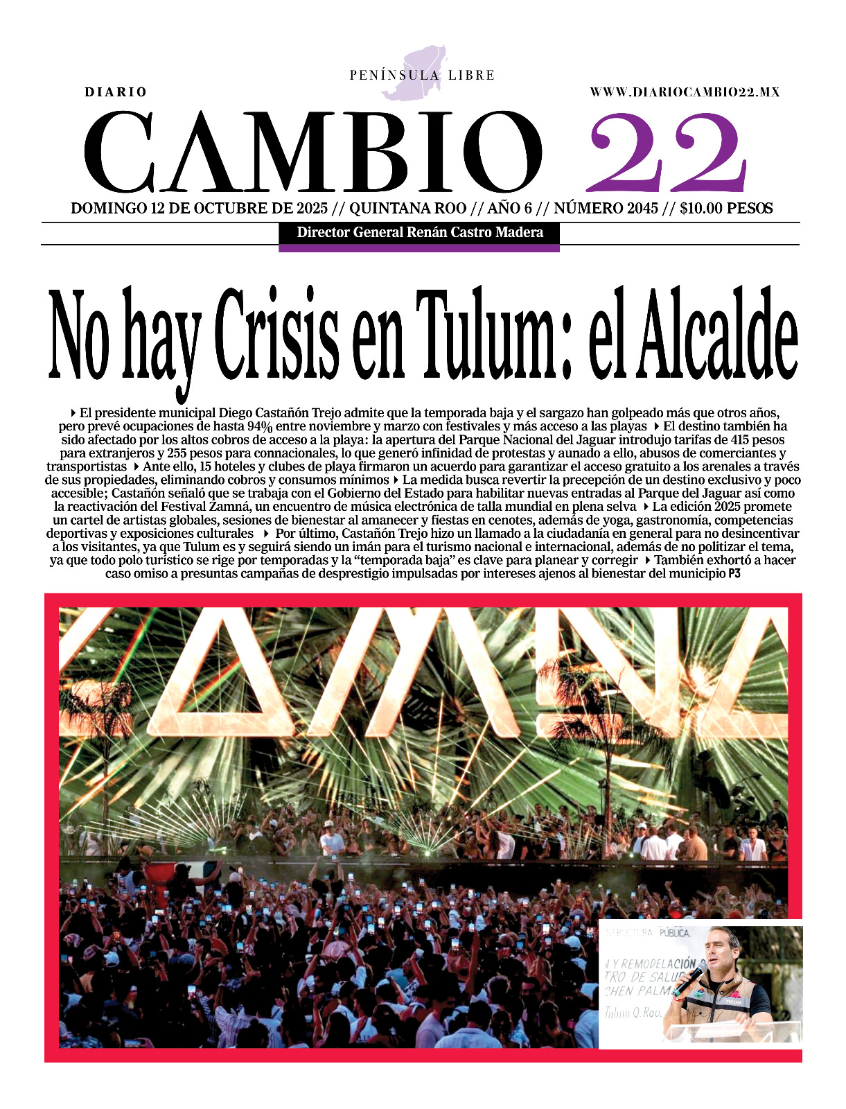 Portadas del Periódico CAMBIO 22 en su Edición Impresa del 12 de Octubre de 2025