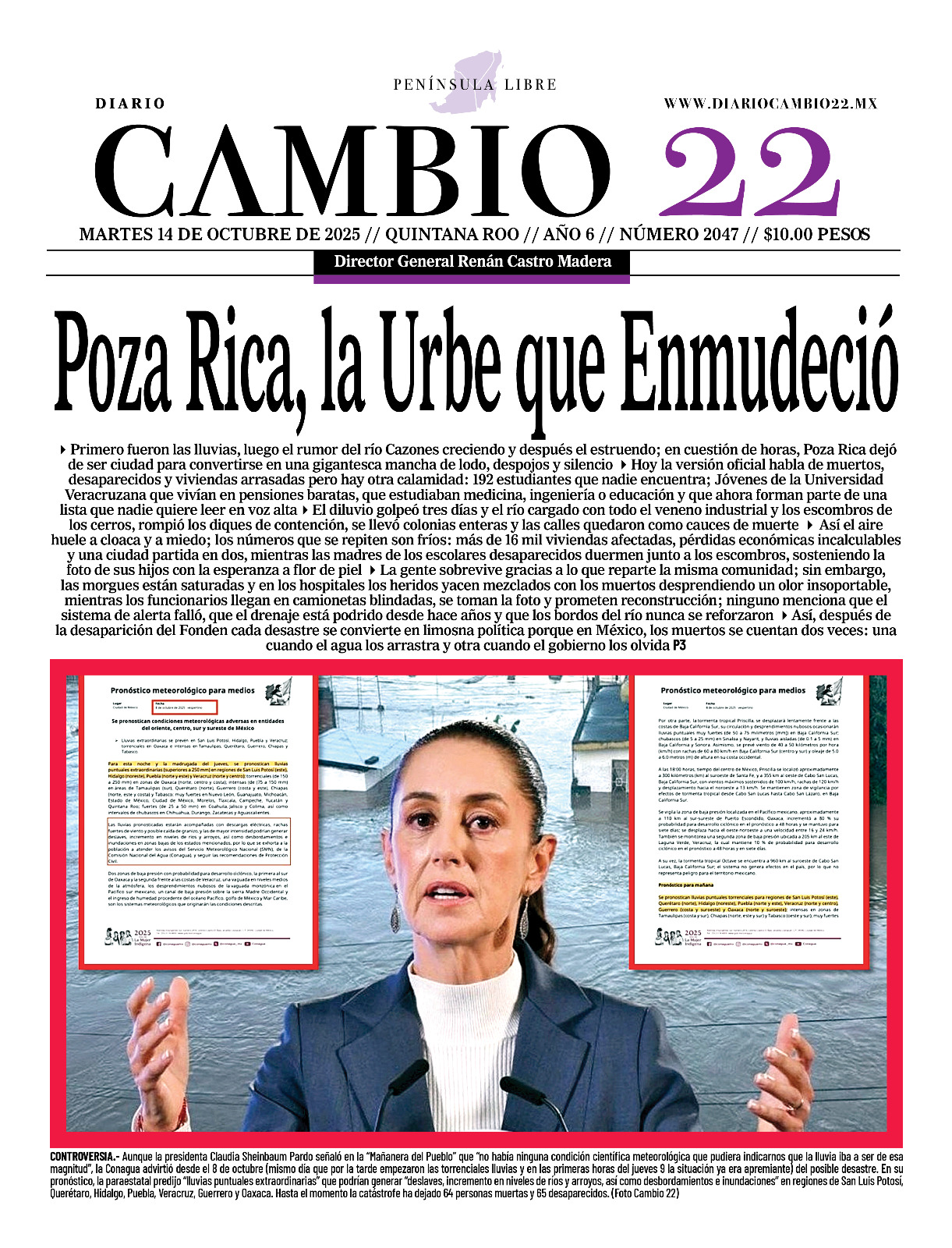 Portadas del Periódico CAMBIO 22 en su Edición Impresa del 14 de Octubre de 2025