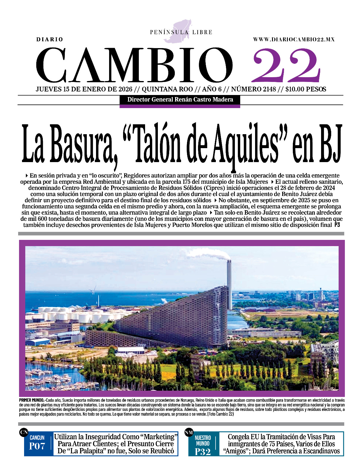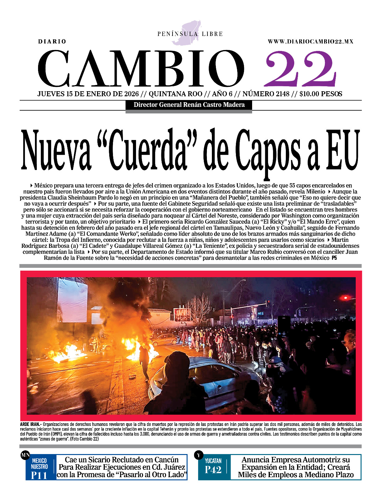 Portadas del Periódico CAMBIO 22 en su Edición Impresa del 15 de Enero de 2026