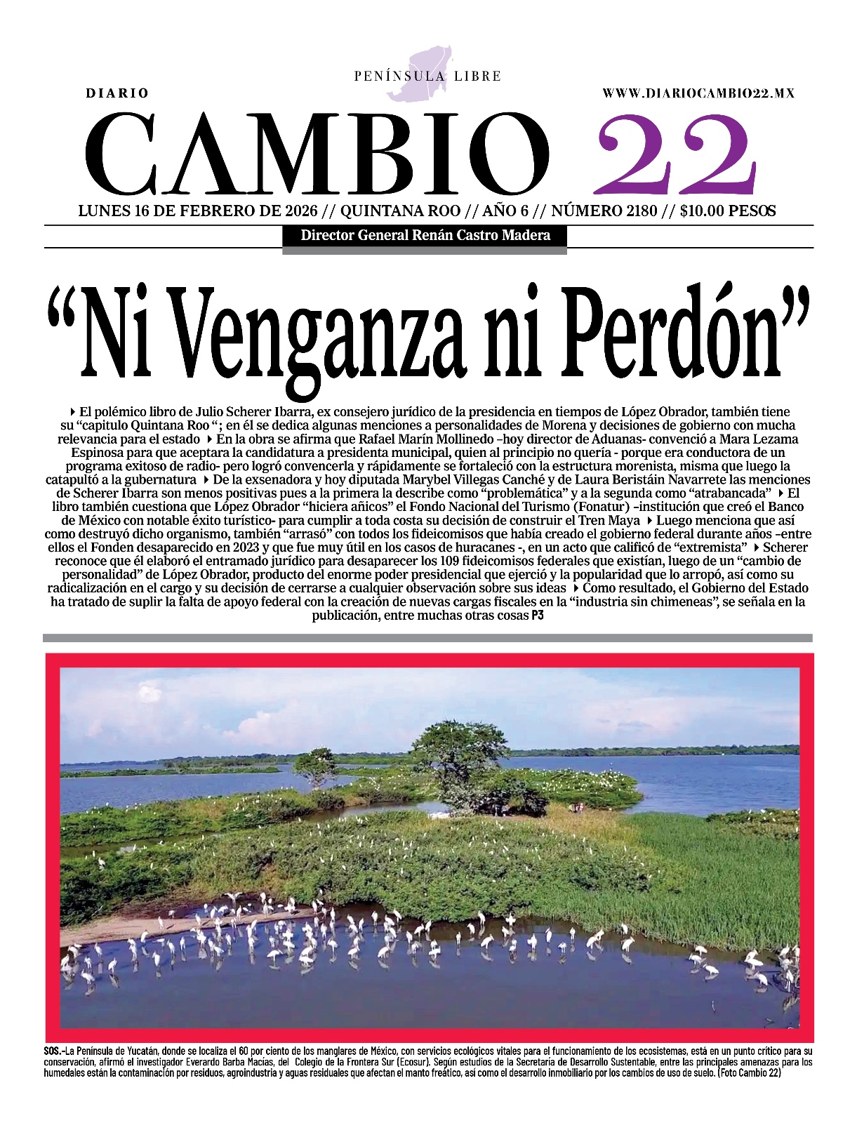 Portadas del Periódico CAMBIO 22 en su Edición Impresa del 16 de Febrero de 2026