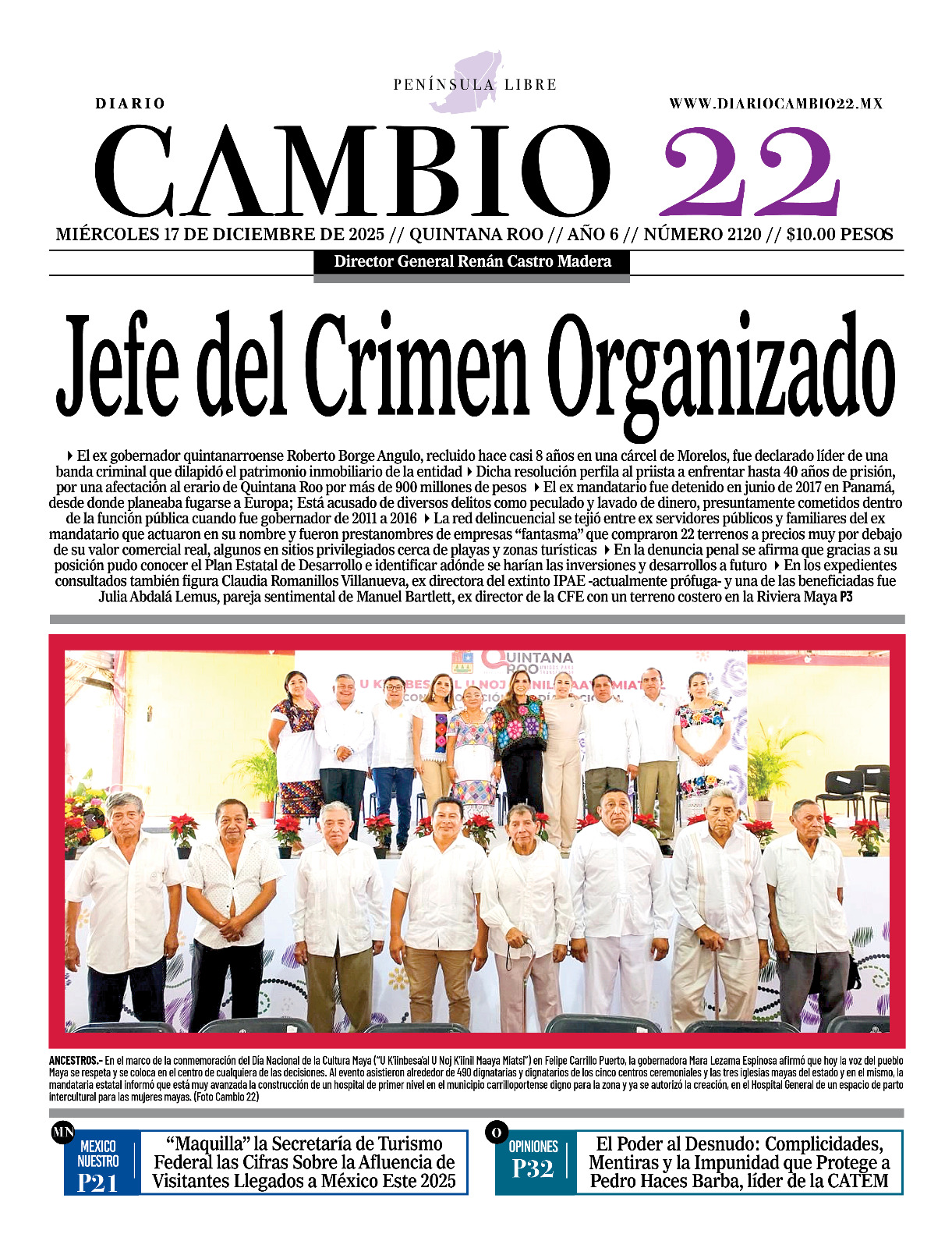 Portadas del Periódico CAMBIO 22 en su Edición Impresa del 17 de Diciembre de 2025