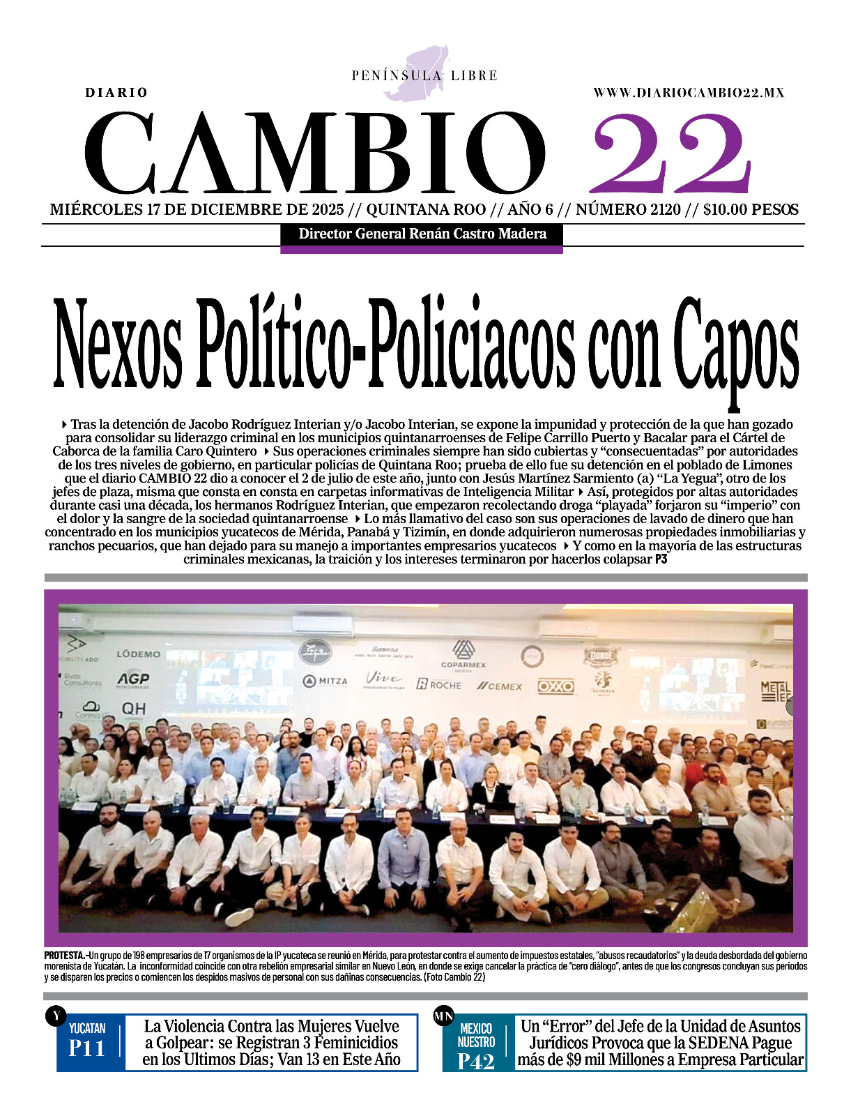 Portadas del Periódico CAMBIO 22 en su Edición Impresa del 17 de Diciembre de 2025