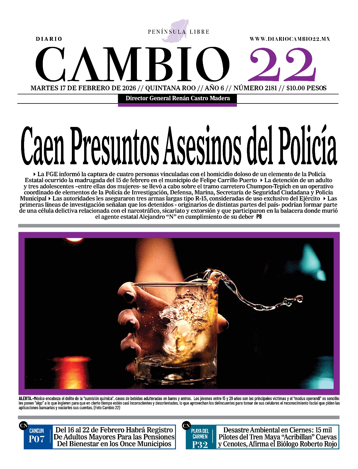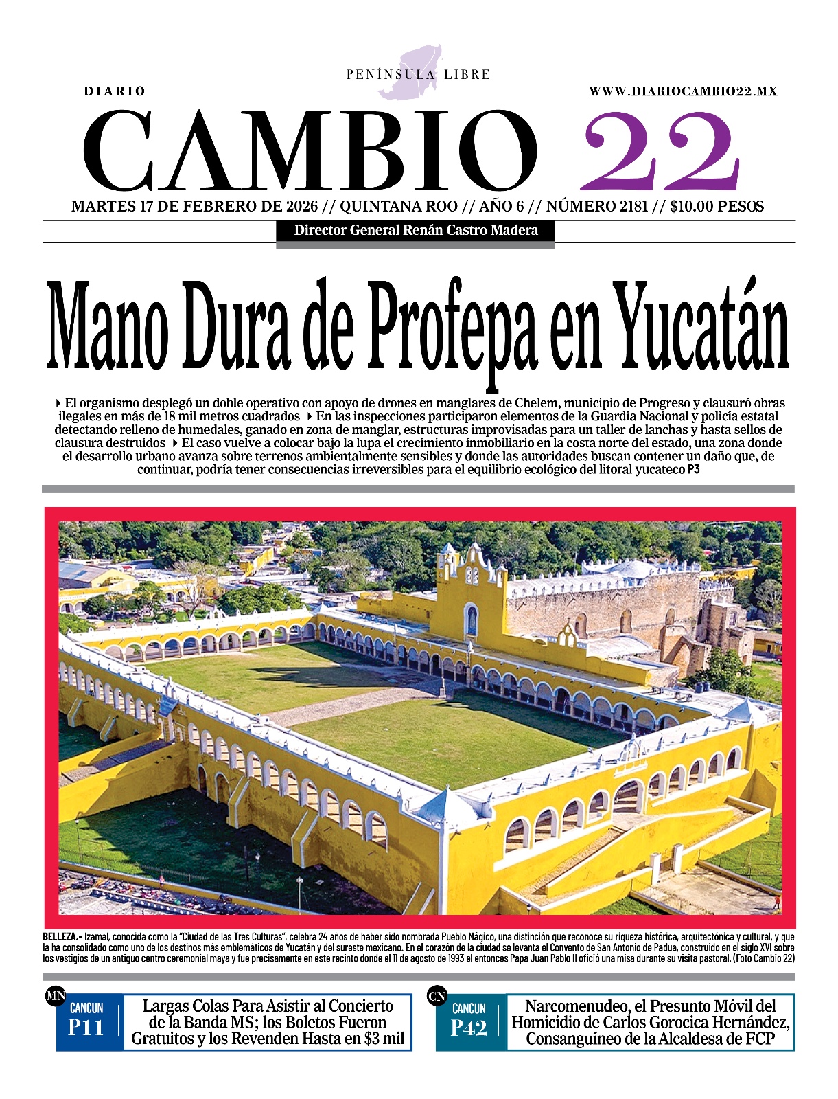 Portadas del Periódico CAMBIO 22 en su Edición Impresa del 17 de Febrero de 2026