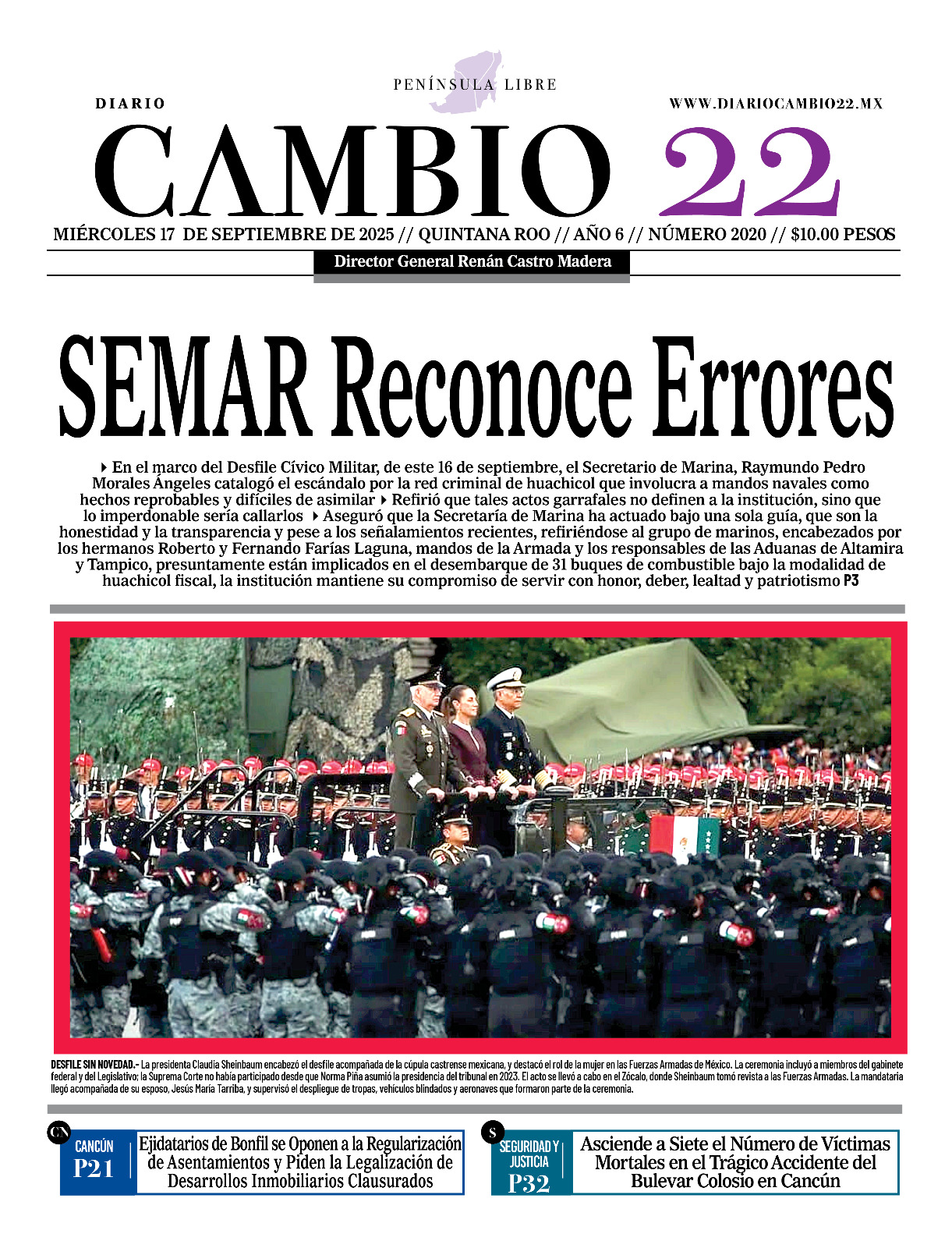 Portadas del Periódico CAMBIO 22 en su Edición Impresa del 17 de Septiembre de 2025