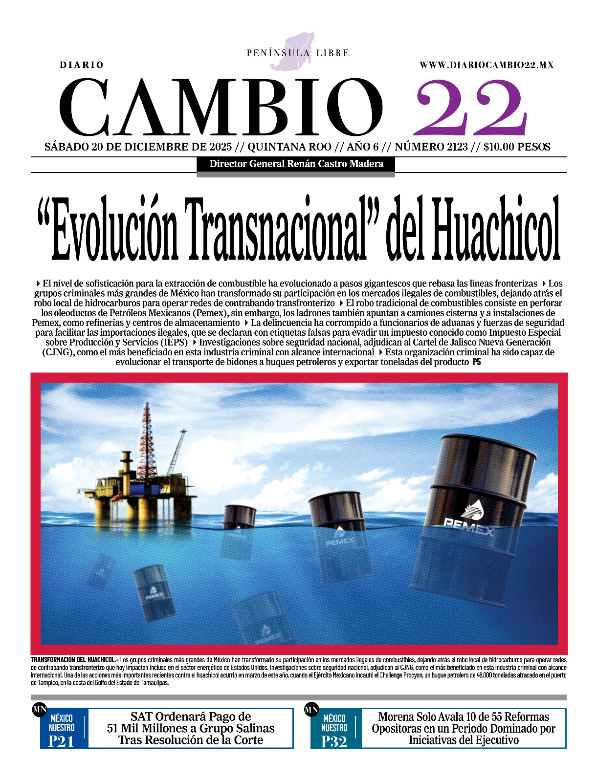 Portadas del Periódico CAMBIO 22 en su Edición Impresa del 20 de Diciembre de 2025