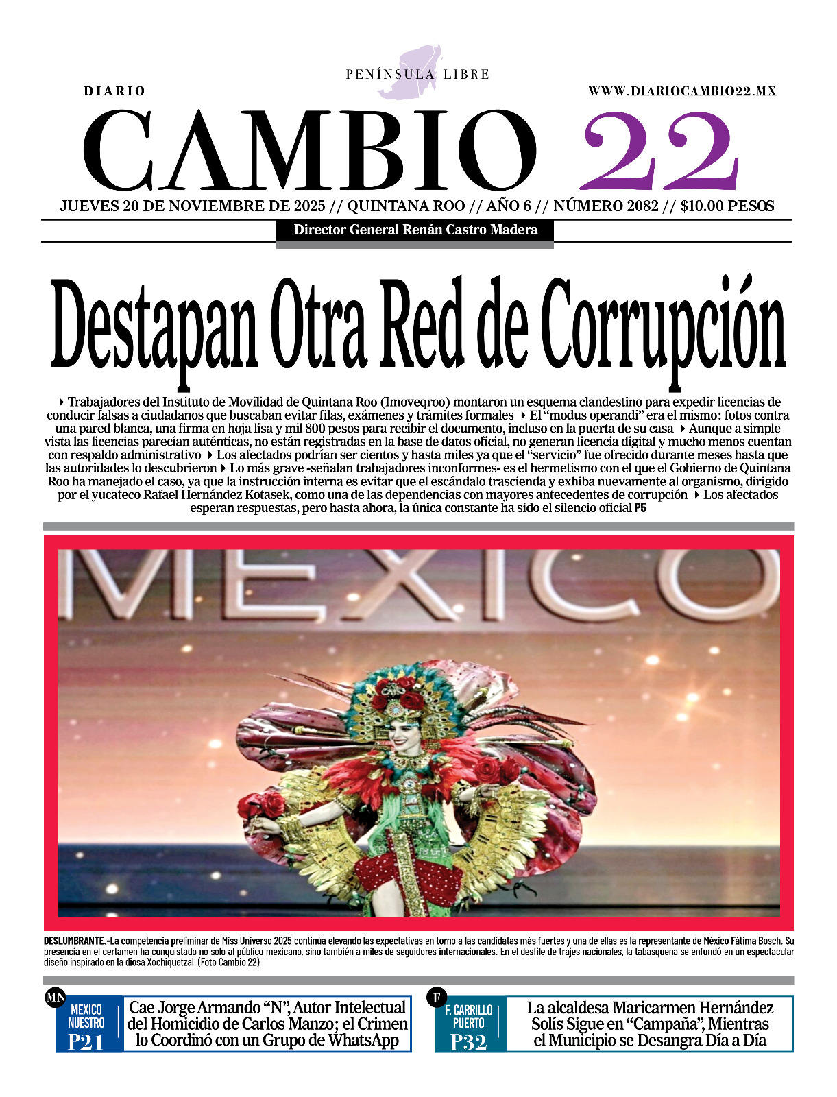 Portadas del Periódico CAMBIO 22 en su Edición Impresa del 20 de Noviembre de 2025
