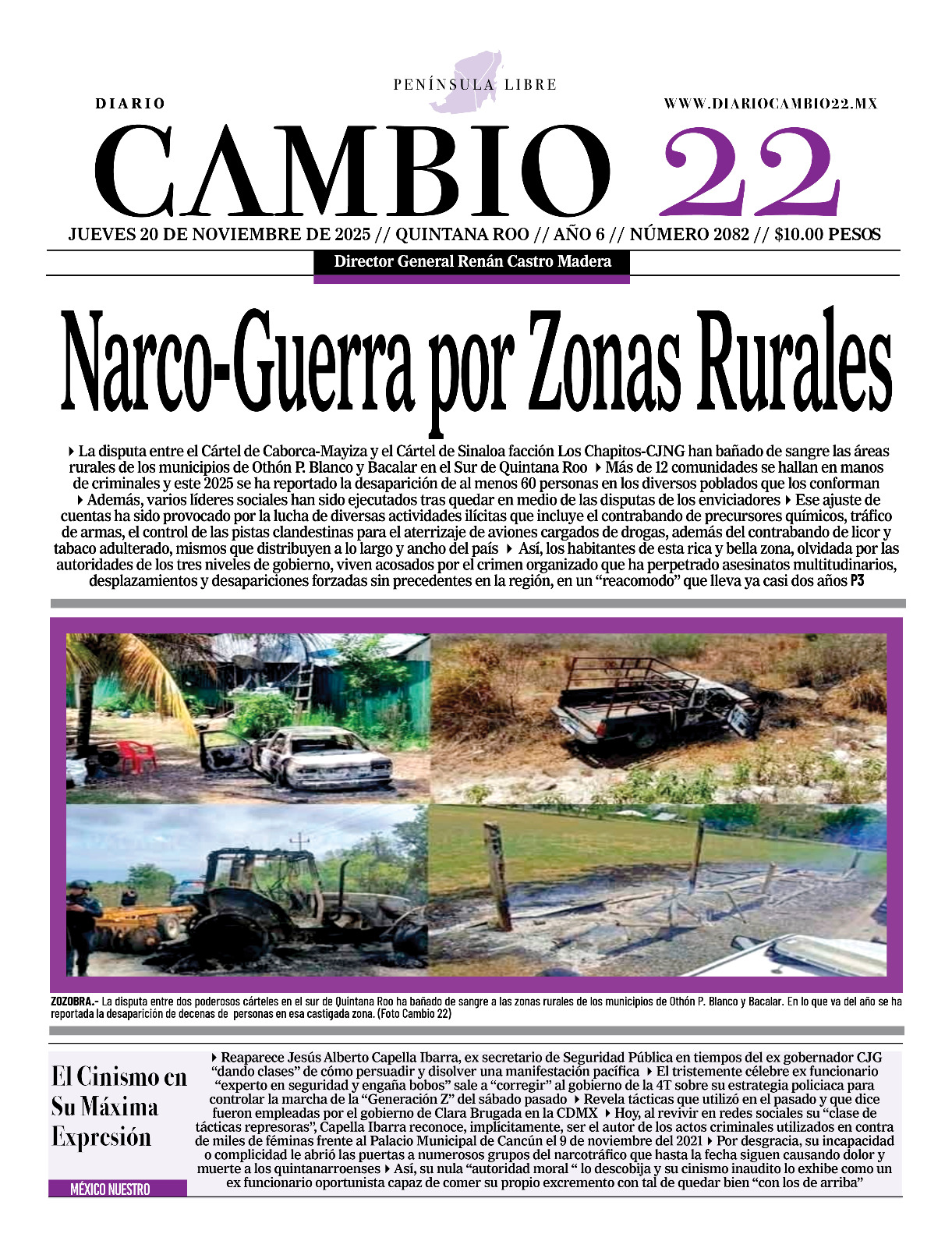 Portadas del Periódico CAMBIO 22 en su Edición Impresa del 20 de Noviembre de 2025