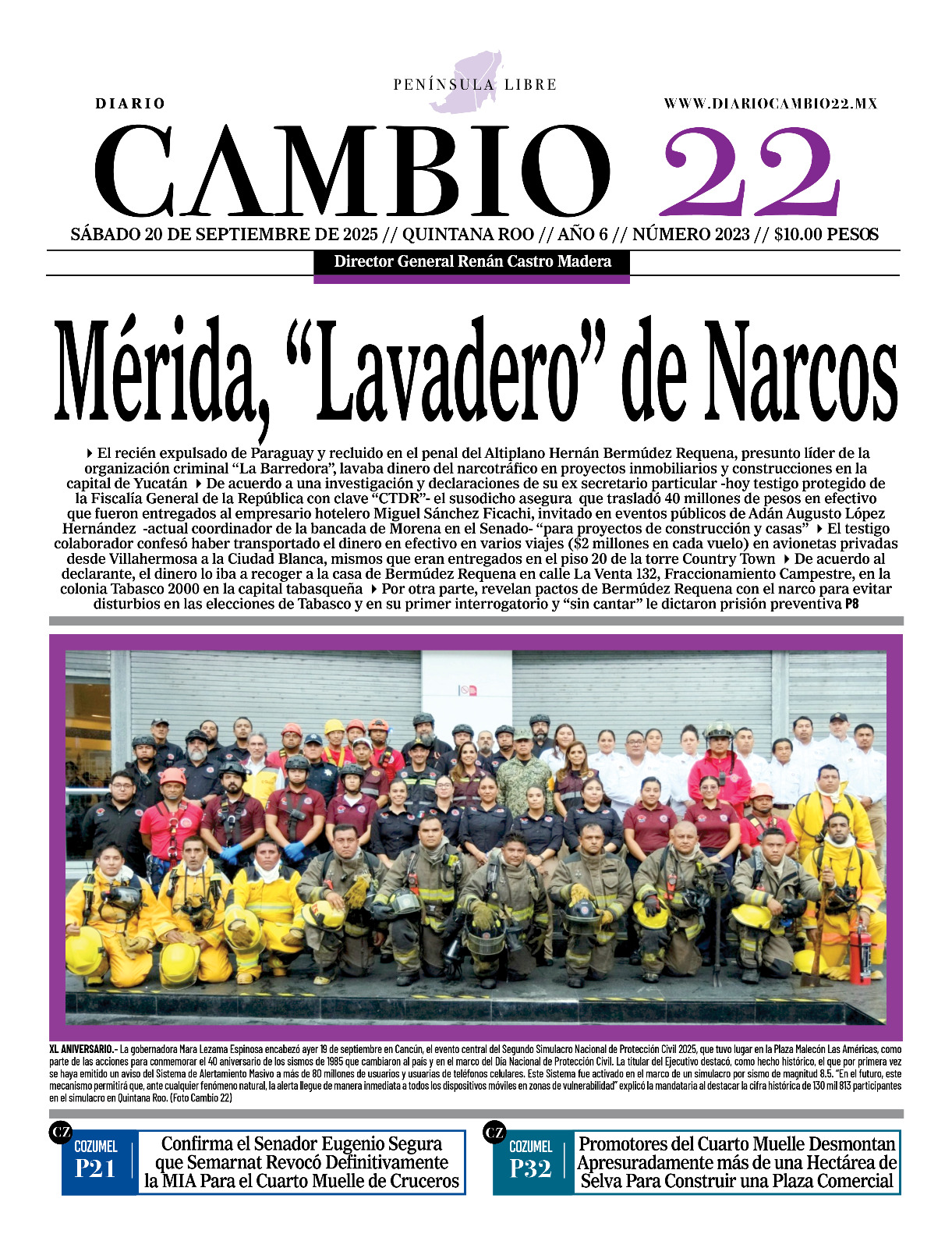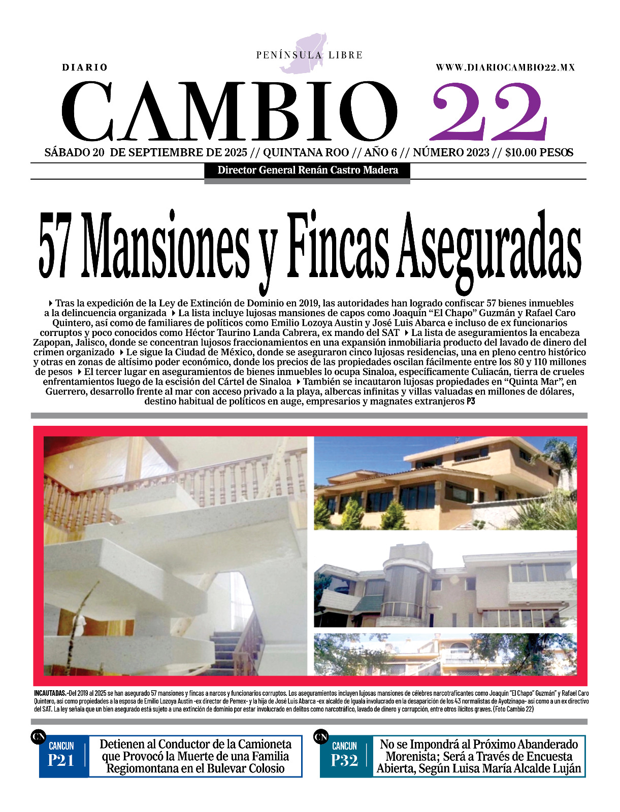 Portadas del Periódico CAMBIO 22 en su Edición Impresa del 20 de Septiembre de 2025