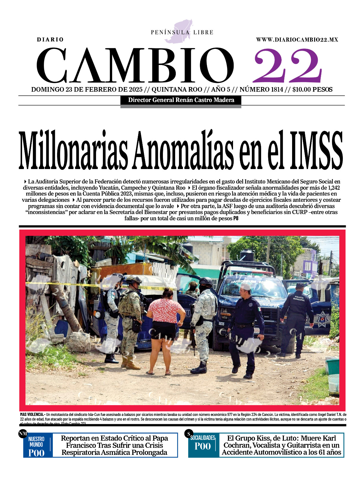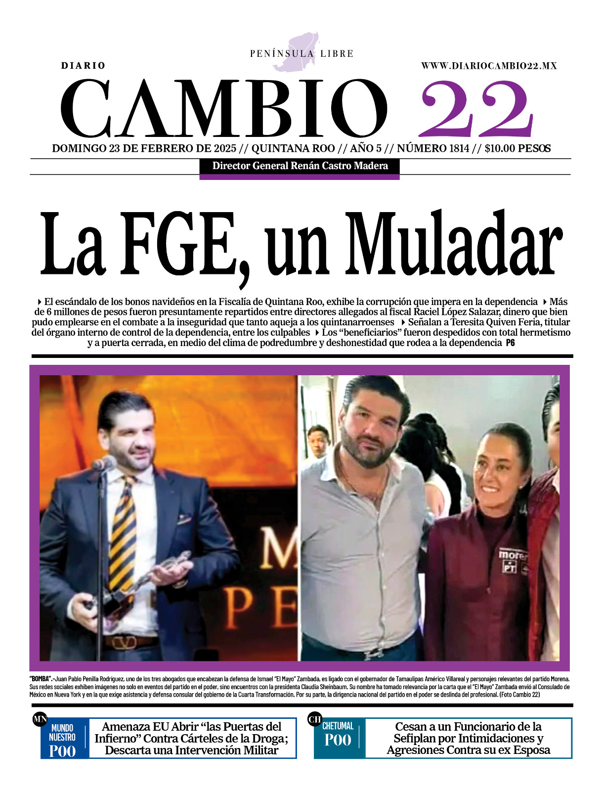 Portadas del Periódico CAMBIO 22 en su Edición Impresa del 23 de Febrero de 2025